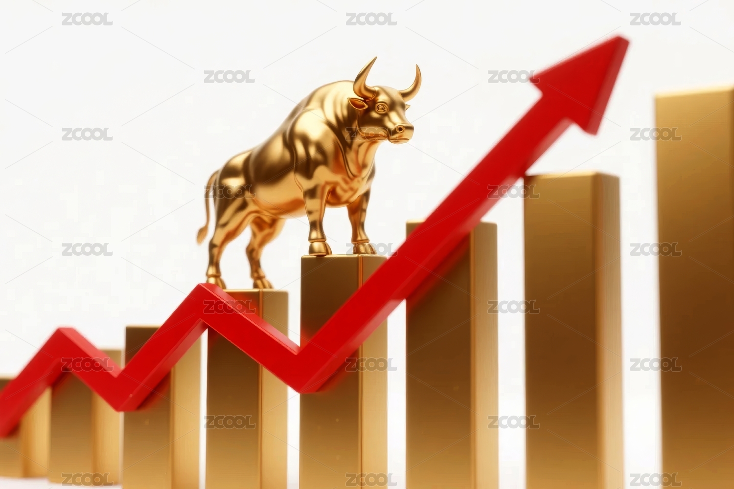 一只金色公牛站在上升趋势箭头旁