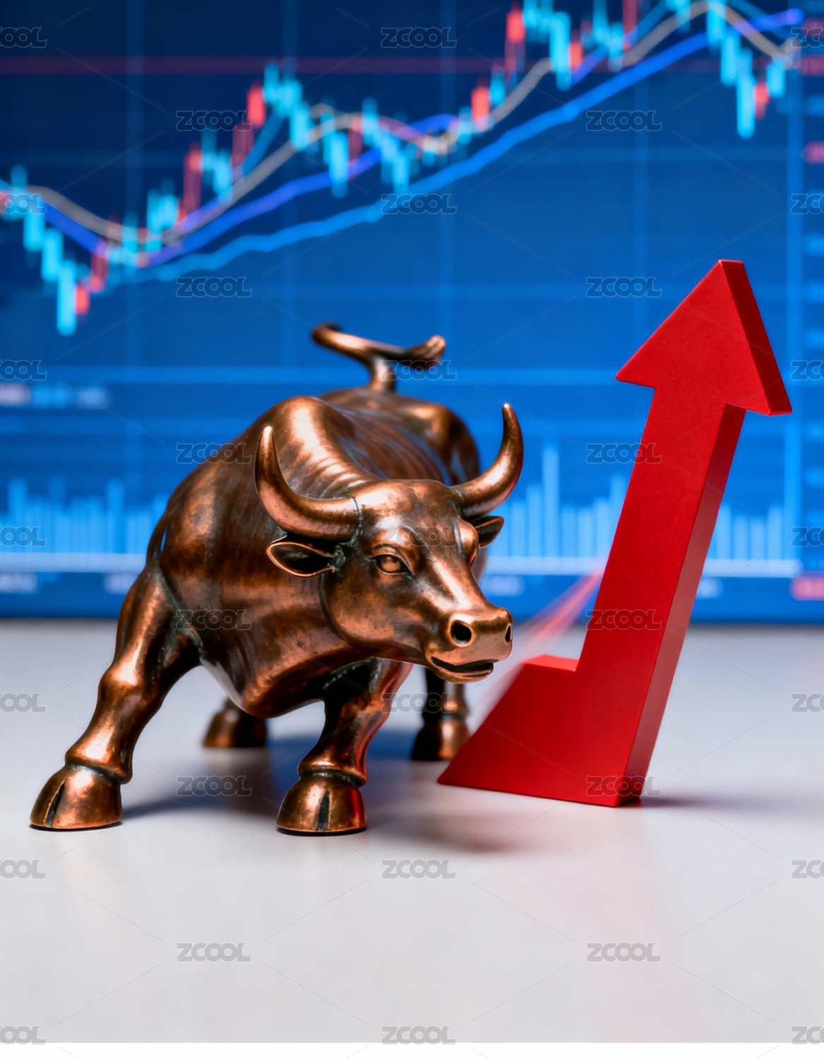 金牛雕像金属感股市场景