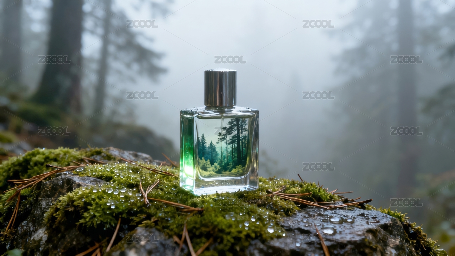 主视觉,商业,壁纸,场景,自然,元素,香水瓶,森林,展示,苔藓