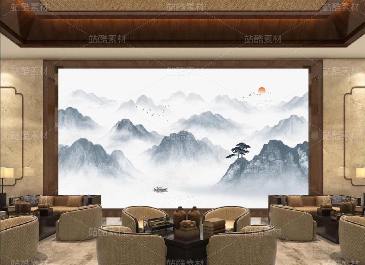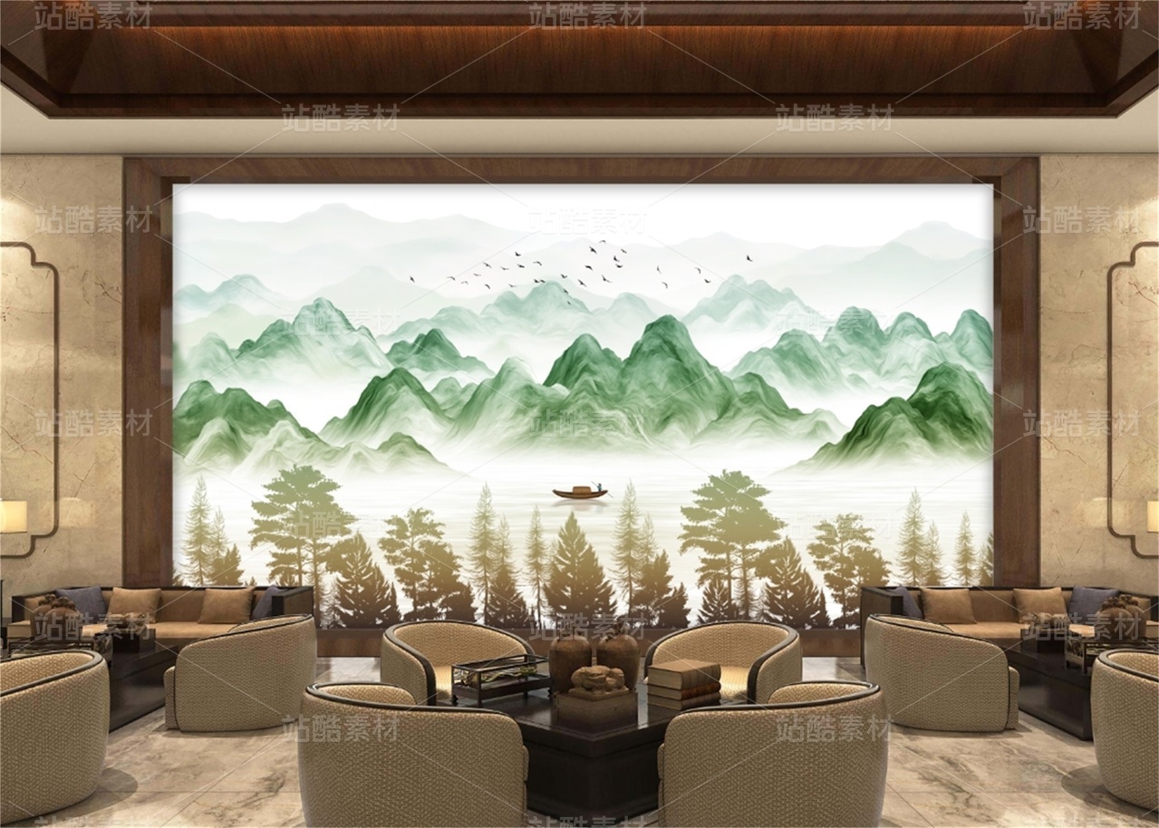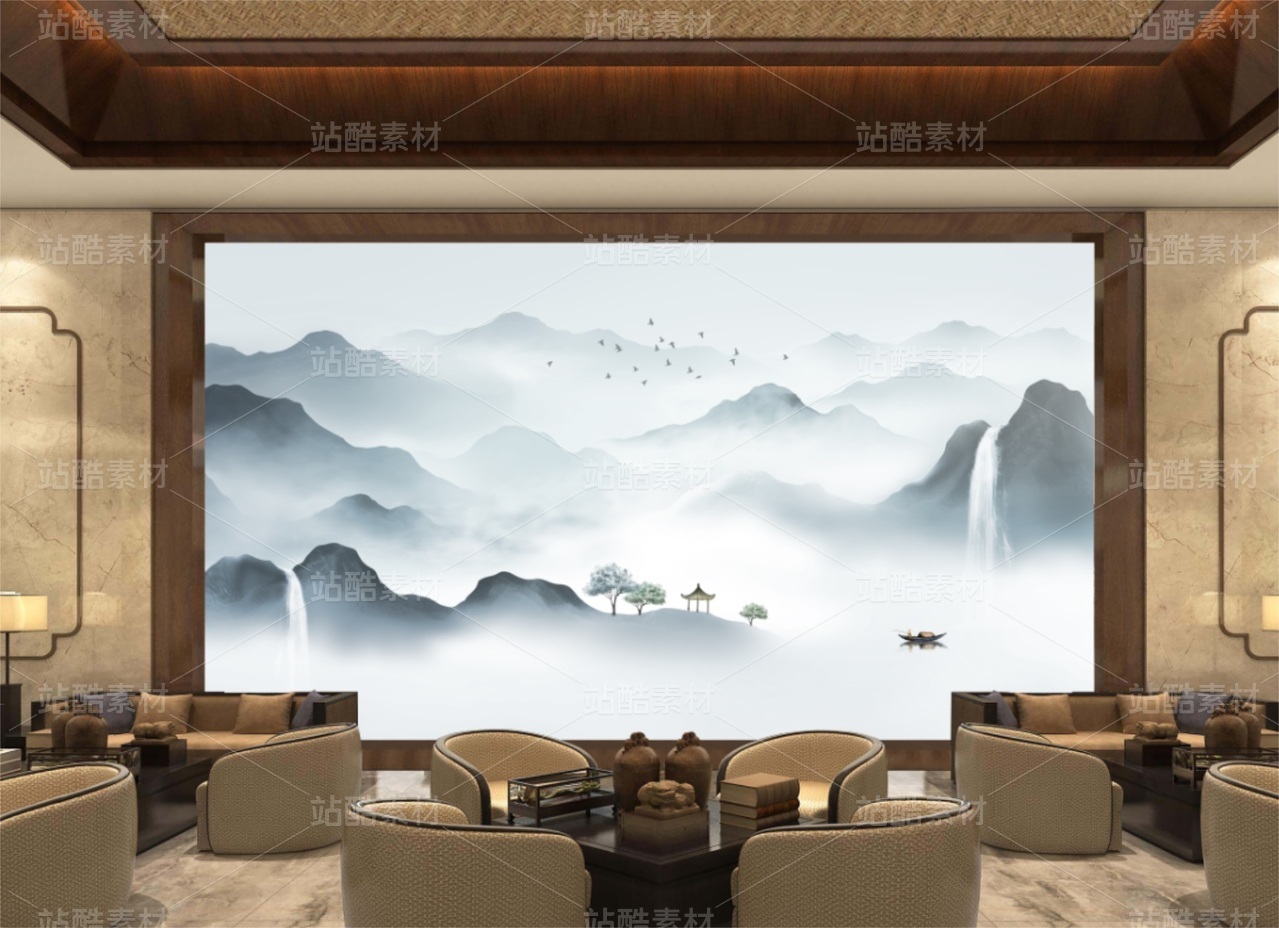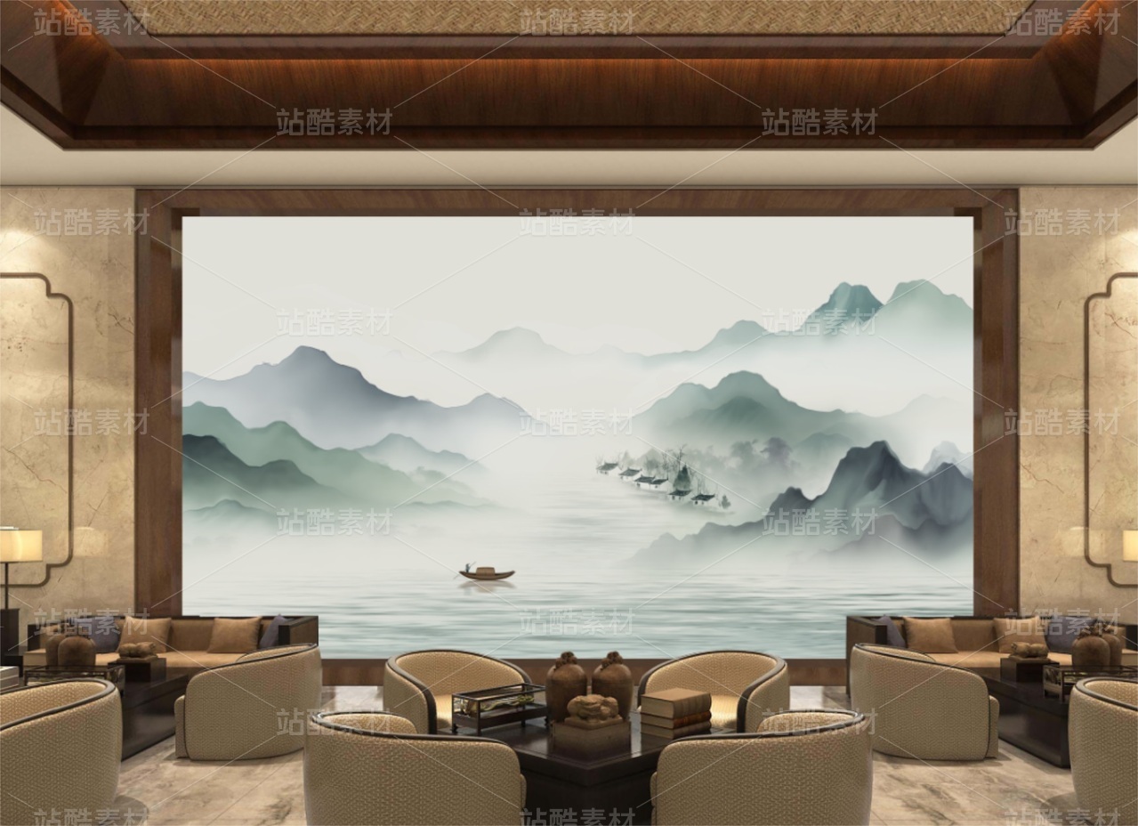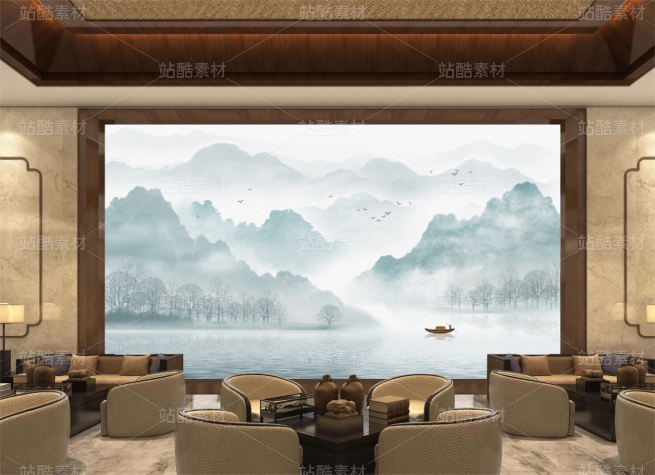 抽象山水装饰画 新中式山水画 意境山水 适用于家装,酒店,文化场所等,用于做:背景墙、隔断、移门,屏风、玄关。高清分层图可以用UV打印。