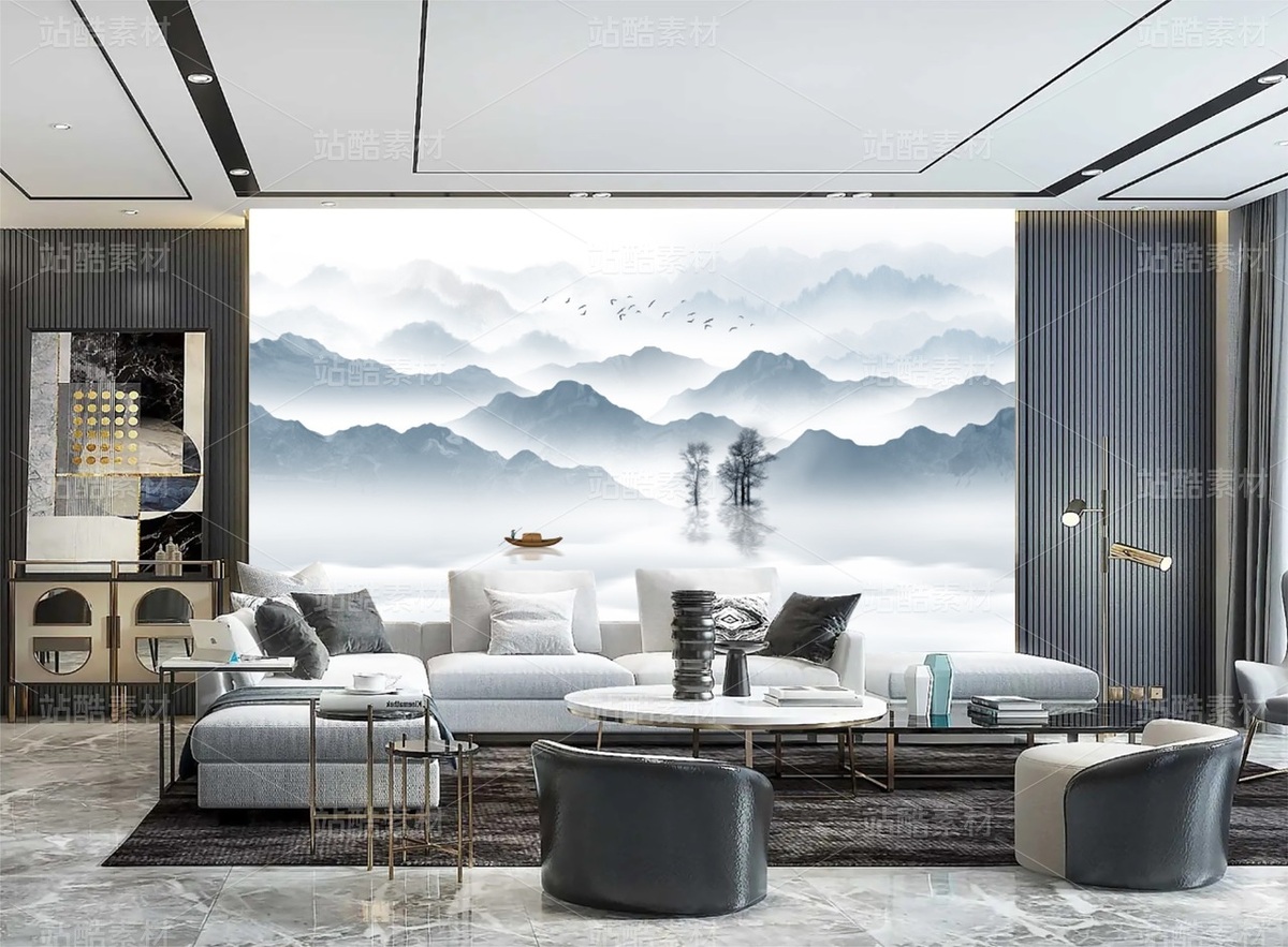 抽象山水装饰画 新中式山水画 意境山水 适用于家装,酒店,文化场所等,用于做:背景墙、隔断、移门,屏风、玄关。高清分层图可以用UV打印。