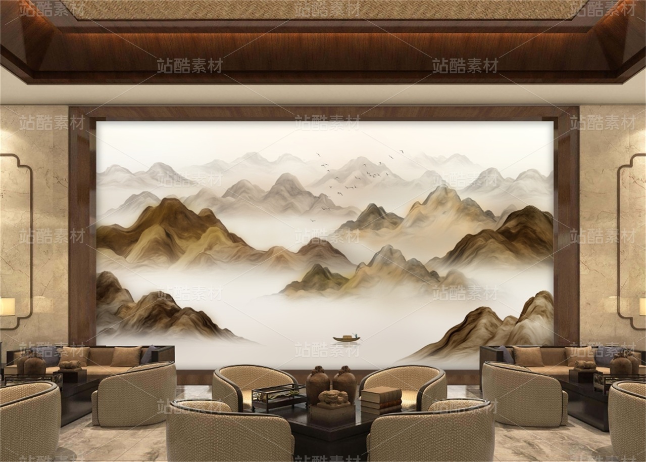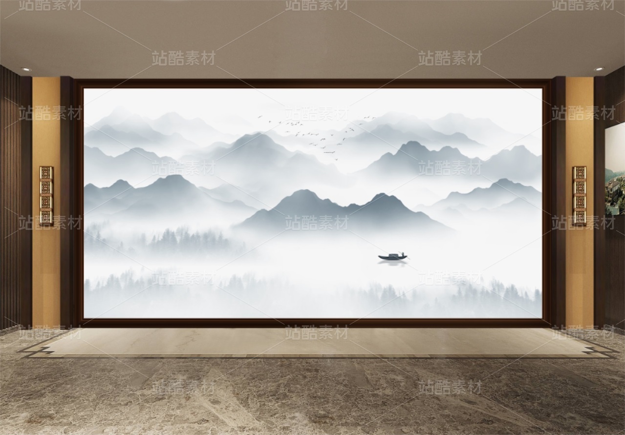 抽象山水装饰画 新中式山水画 意境山水 适用于家装,酒店,文化场所等,用于做:背景墙、隔断、移门,屏风、玄关。高清分层图可以用UV打印。