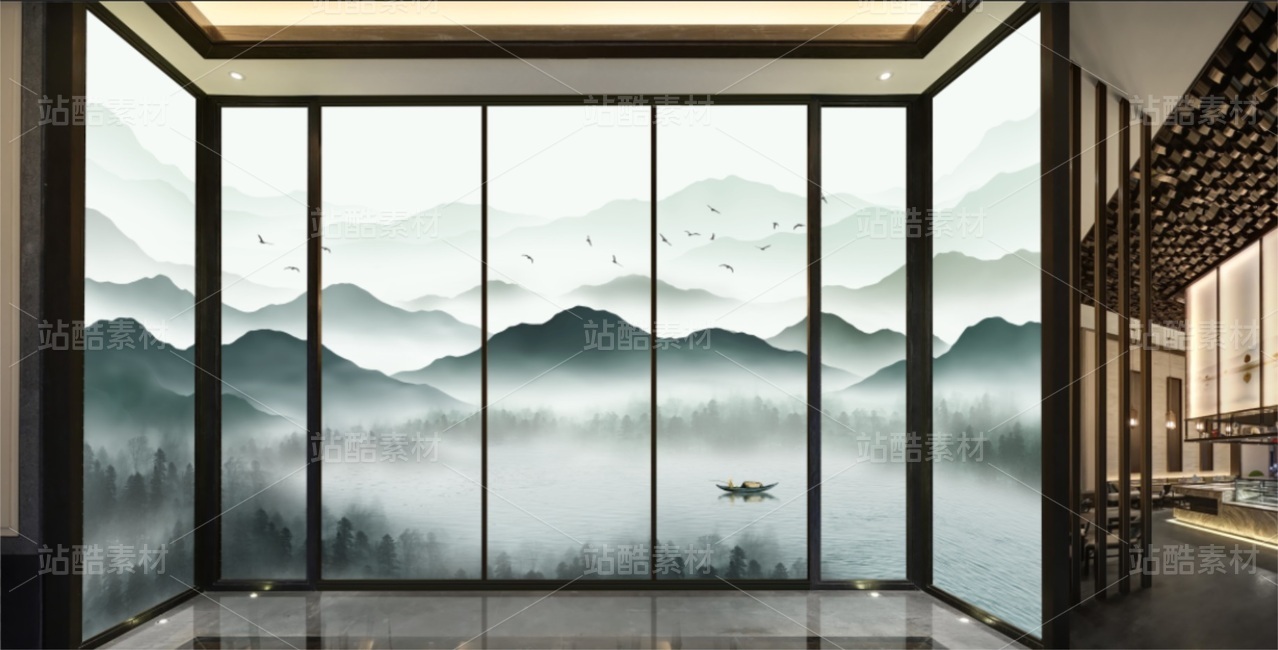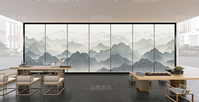 抽象山水装饰画 新中式山水画 意境山水 适用于家装,酒店,文化场所等,用于做:背景墙、隔断、移门,屏风、玄关。高清分层图可以用UV打印。