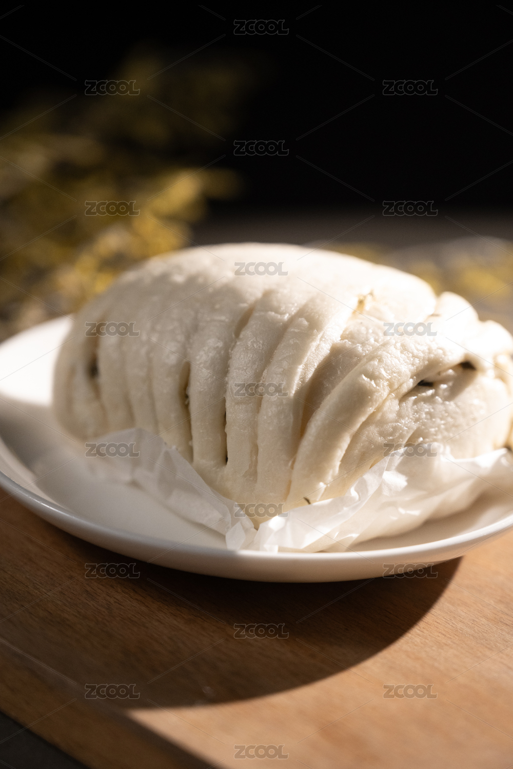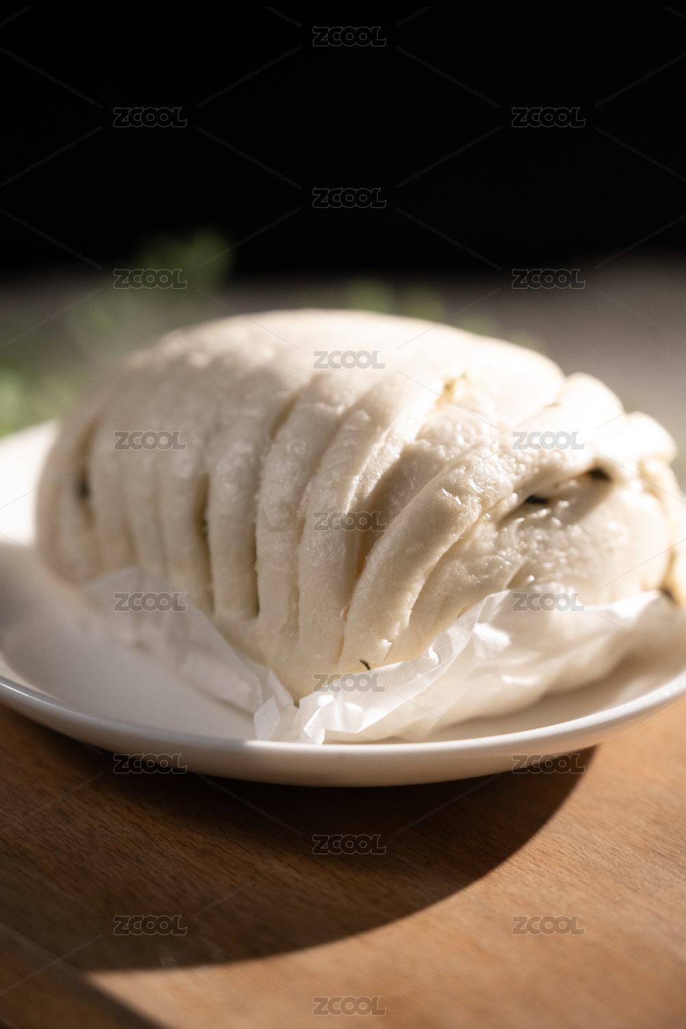 桌面上的盘子里的美味可口的香葱花卷