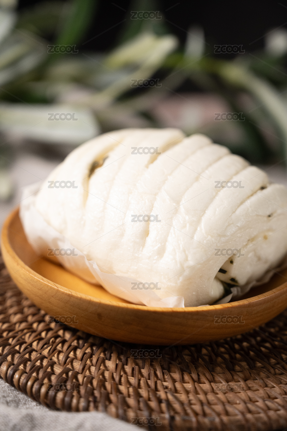 桌面上的盘子里的美味可口的香葱花卷