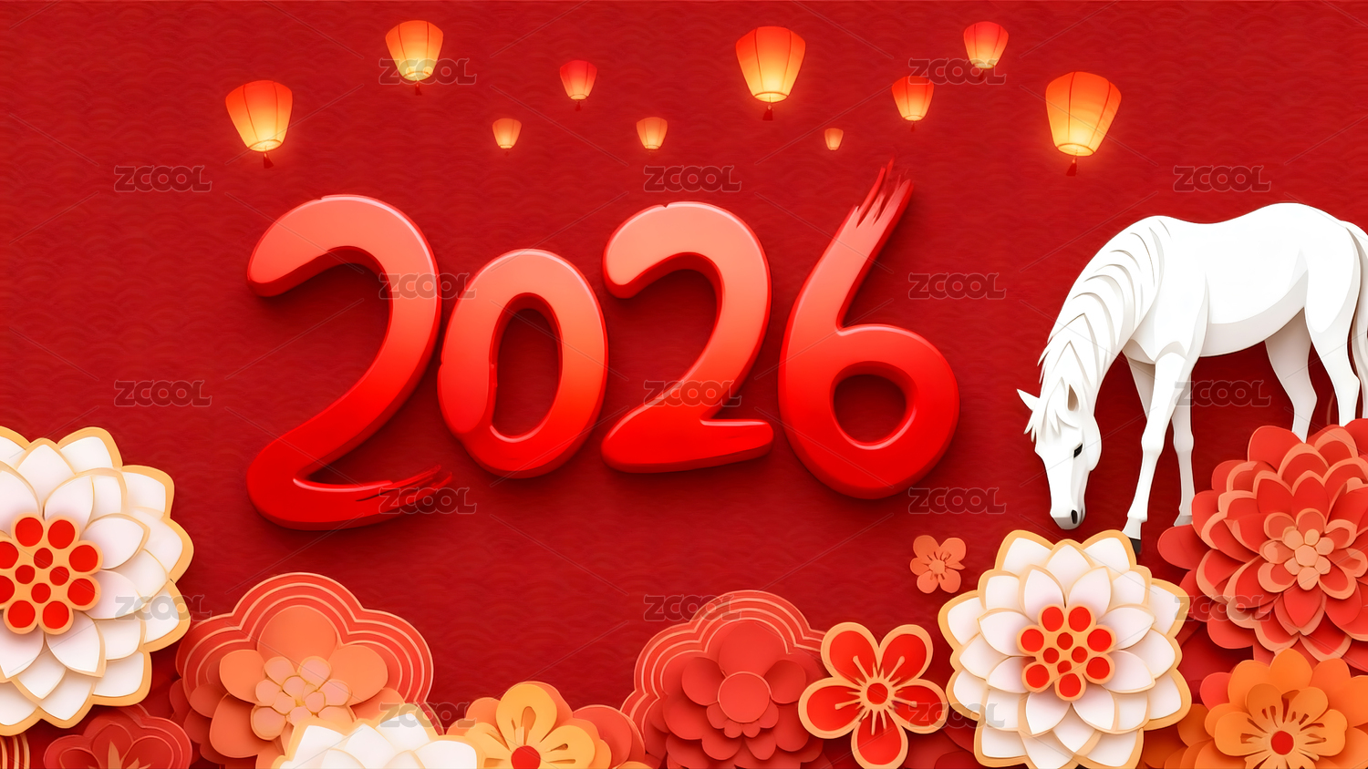 马年,马,2026年,台历,封面,插画,新年,春节,剪纸,国风