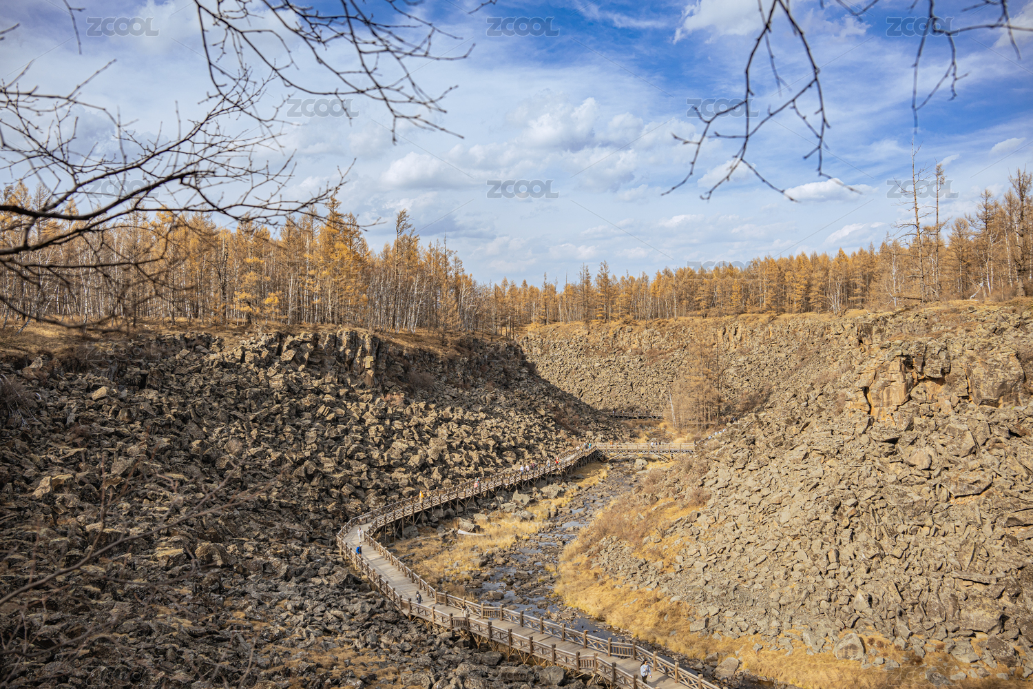 中国兴安盟阿尔山森林国家公园大峡谷秋景