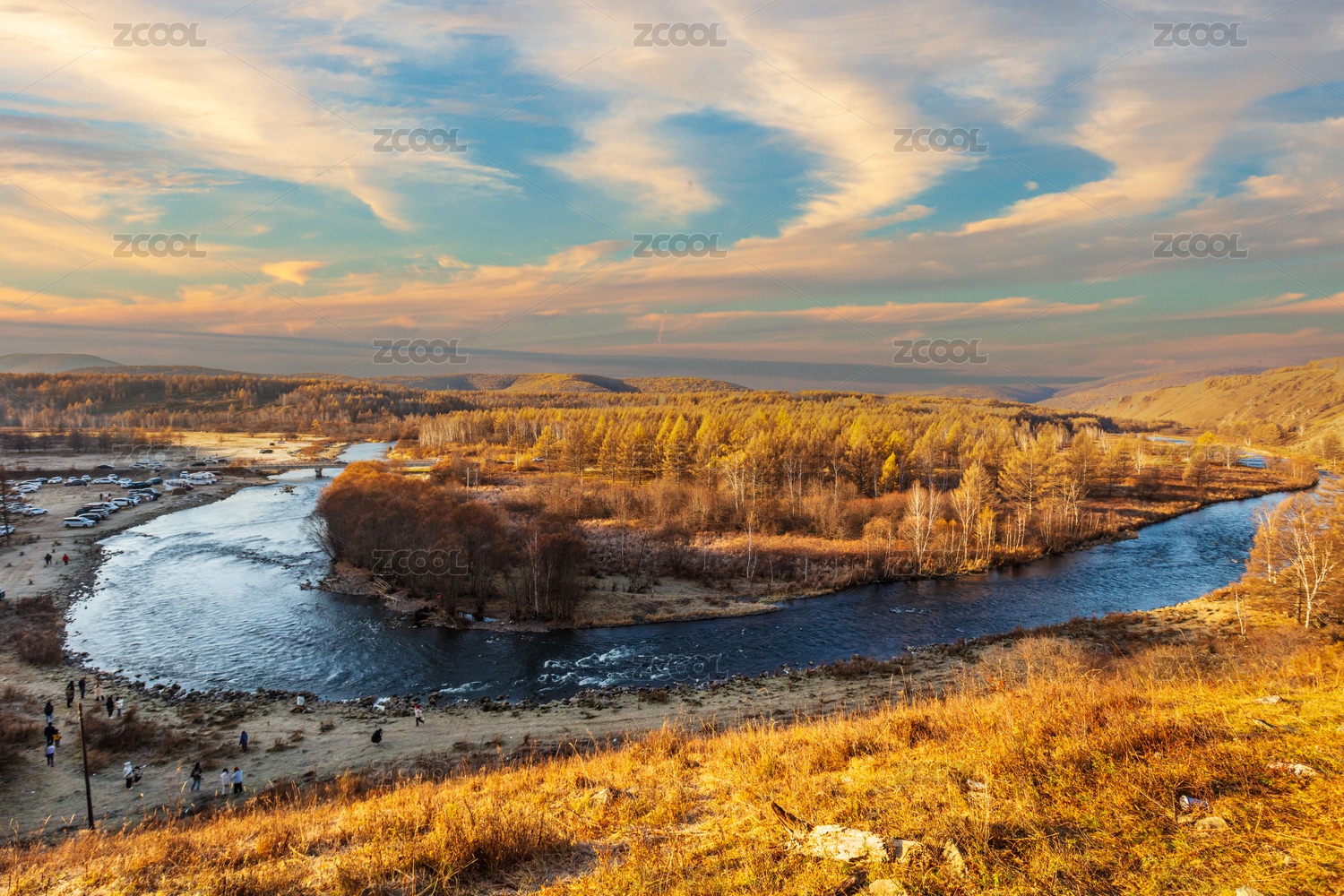 黑龙江大兴安岭龙江第一湾风景区秋色