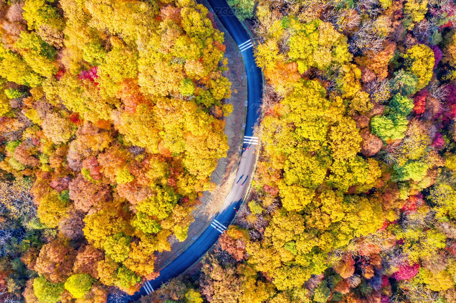 东北,吉林,旅游,美景,秋天,秋季,山林,蜿蜒,公路,航拍