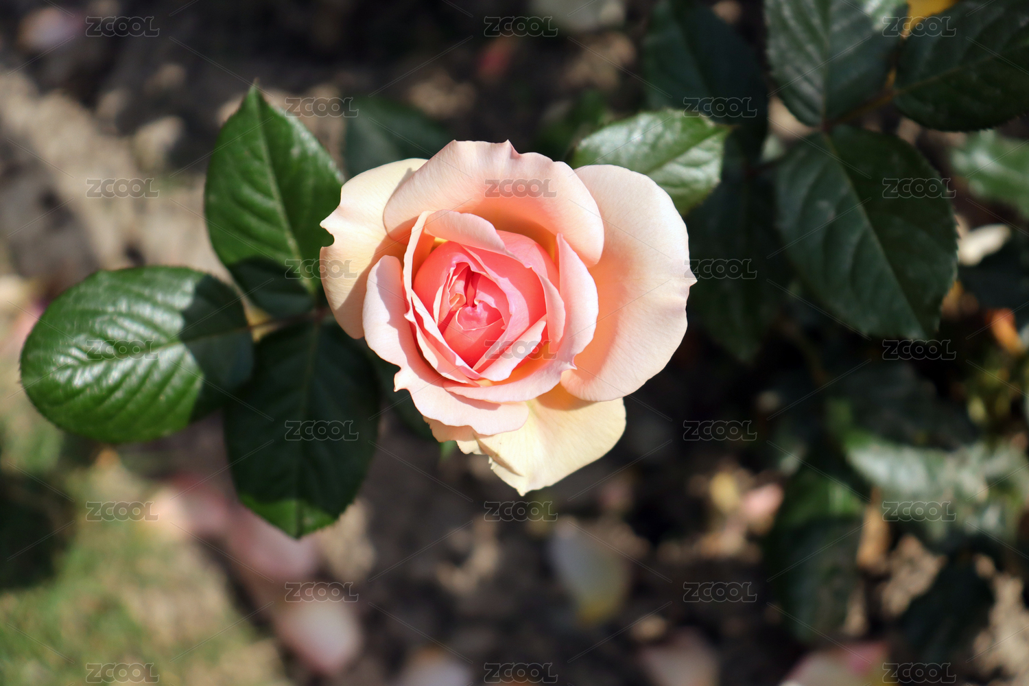 玫瑰,花瓣,花芯,绿叶背景,自然,粉白渐变,特写,花卉,柔美,植物