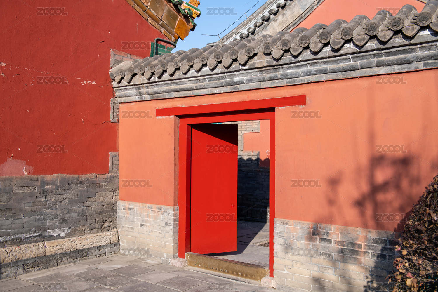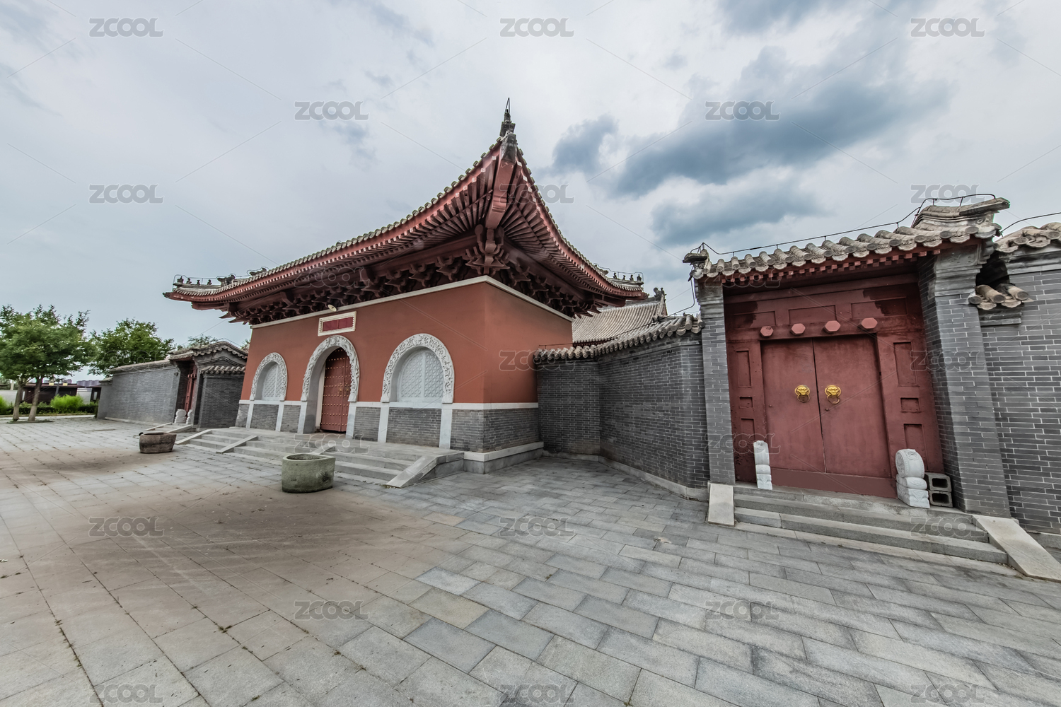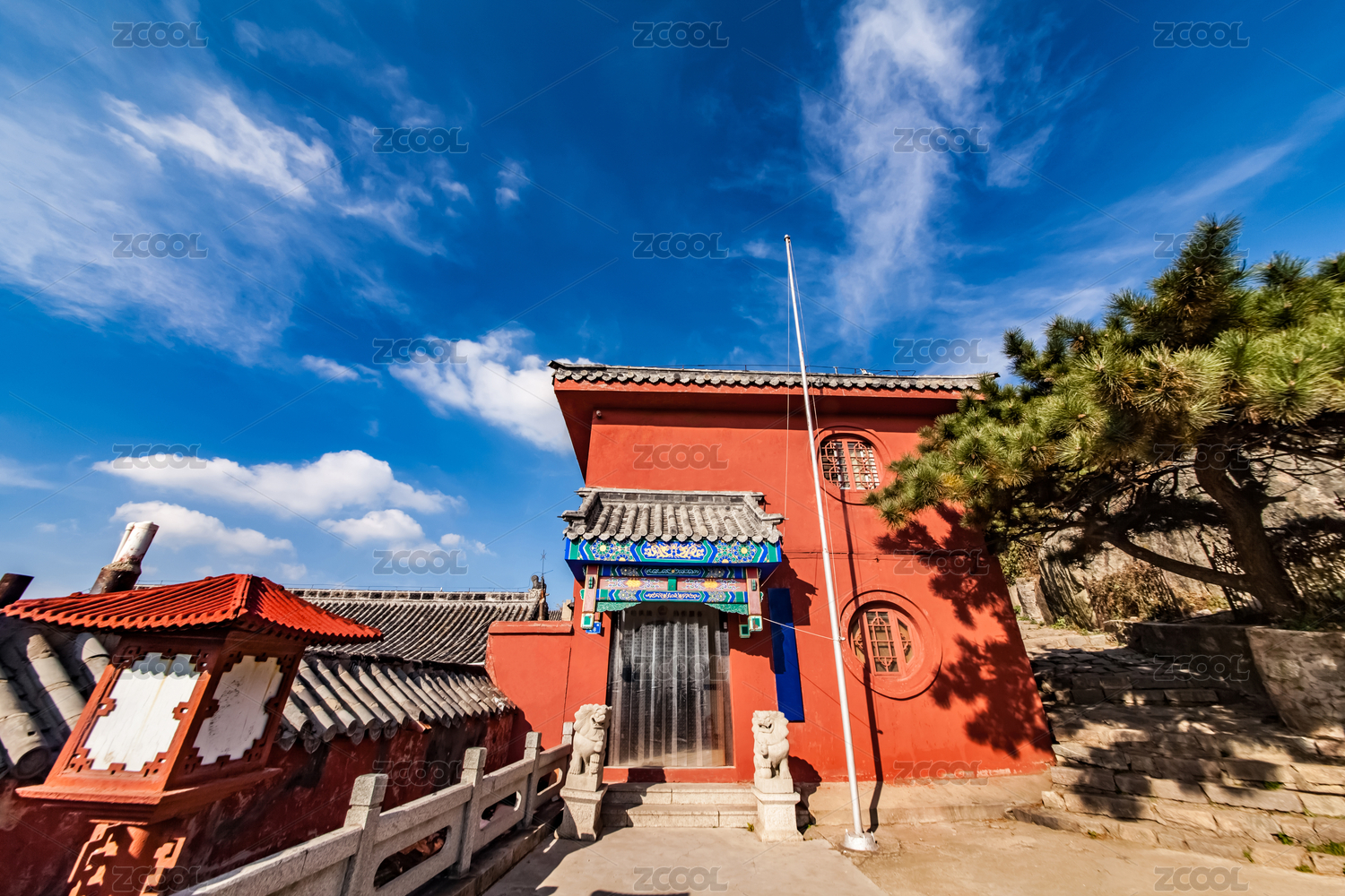 山西,五台山,红墙,宫门,石狮,古建筑,中式建筑,蓝天白云,传统建筑,朱漆大门