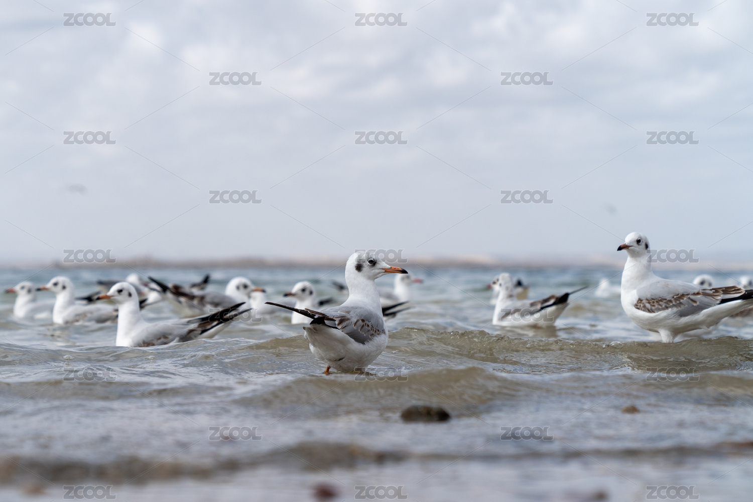 在青岛海边岩石上晒太阳的红嘴海鸥
