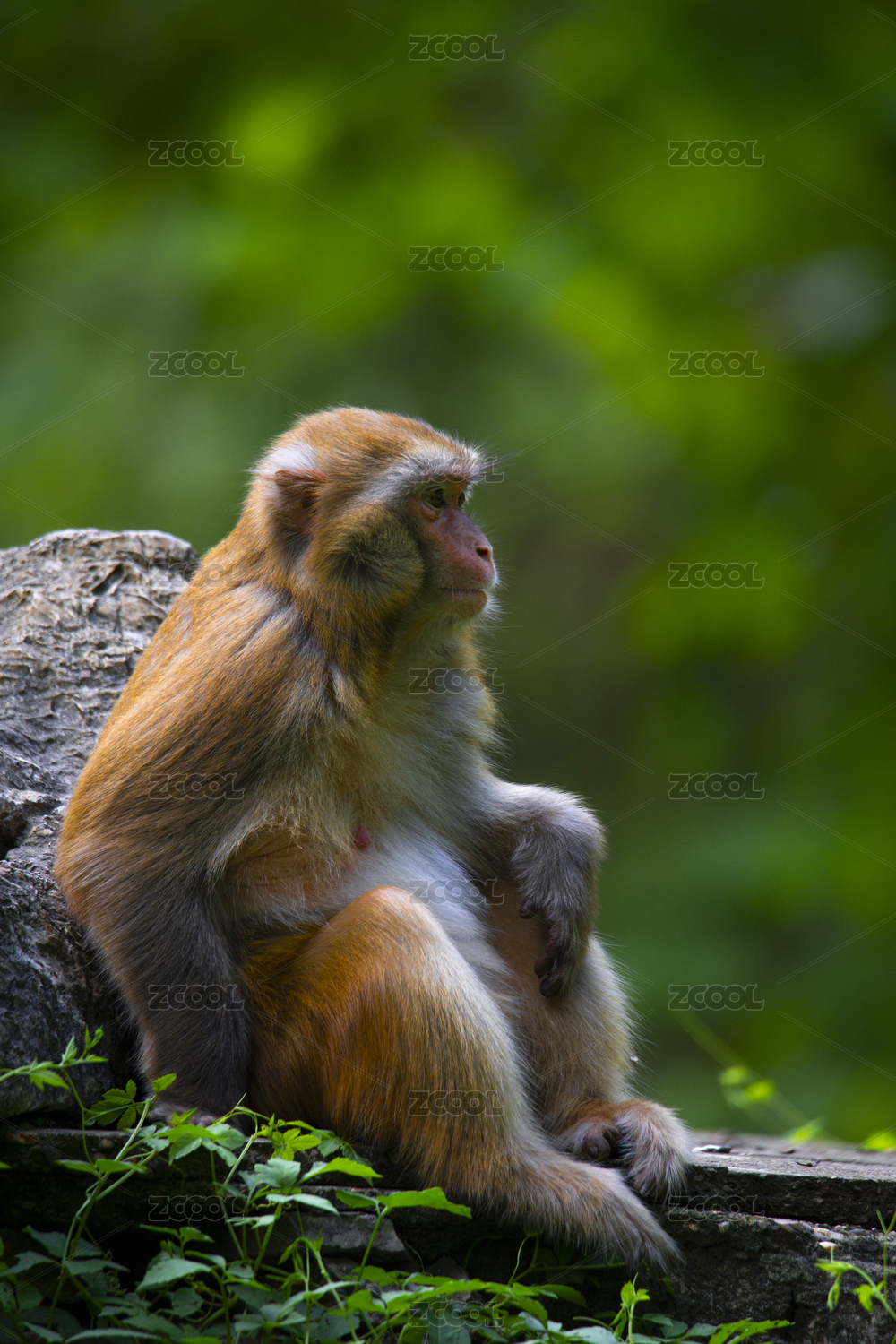 岩石上静坐的猕猴