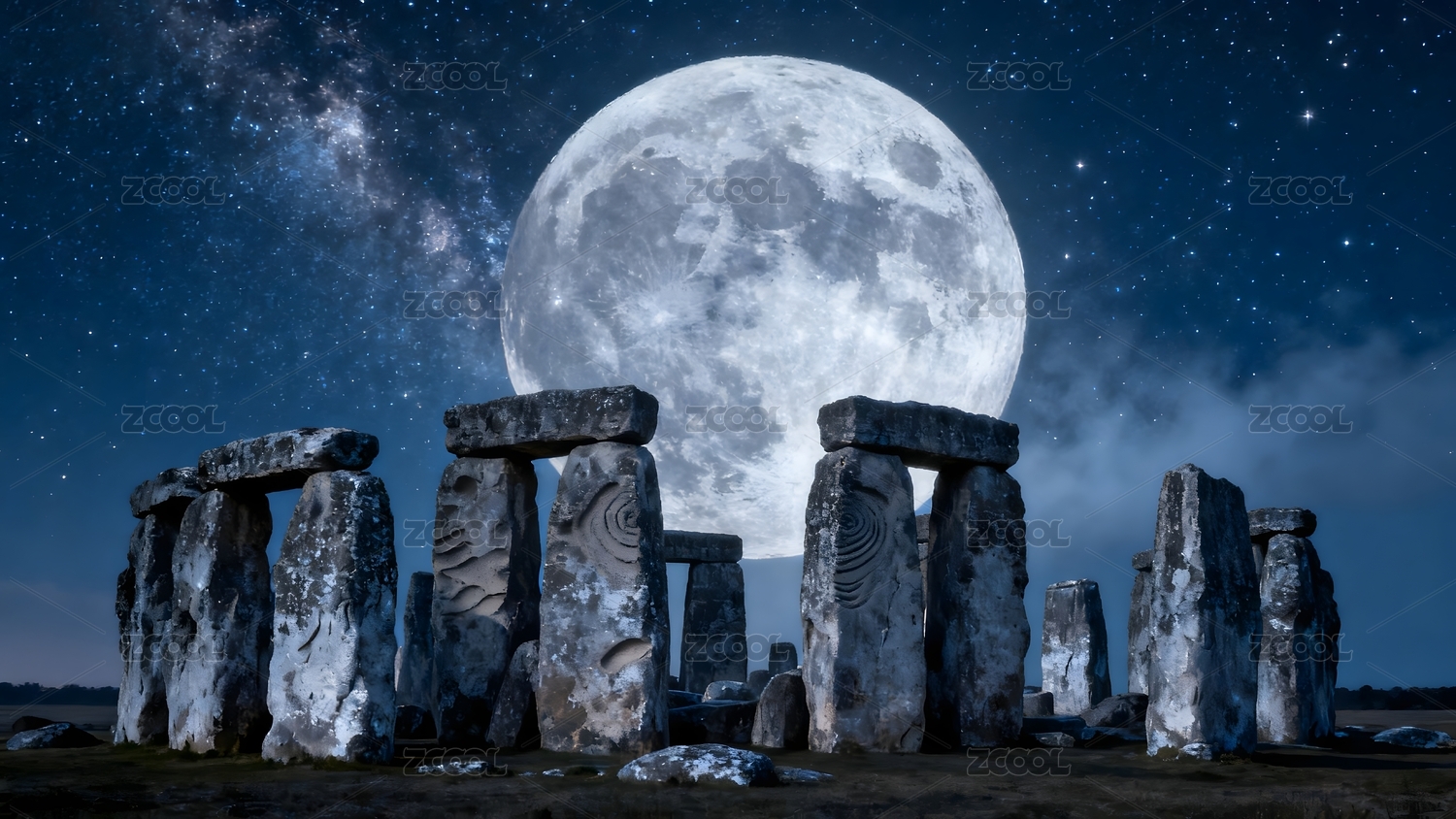巨石阵满月神秘夜景