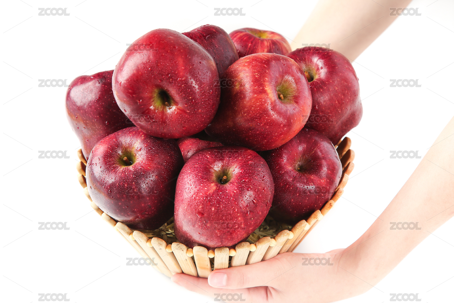 白底上放着一篮蛇果