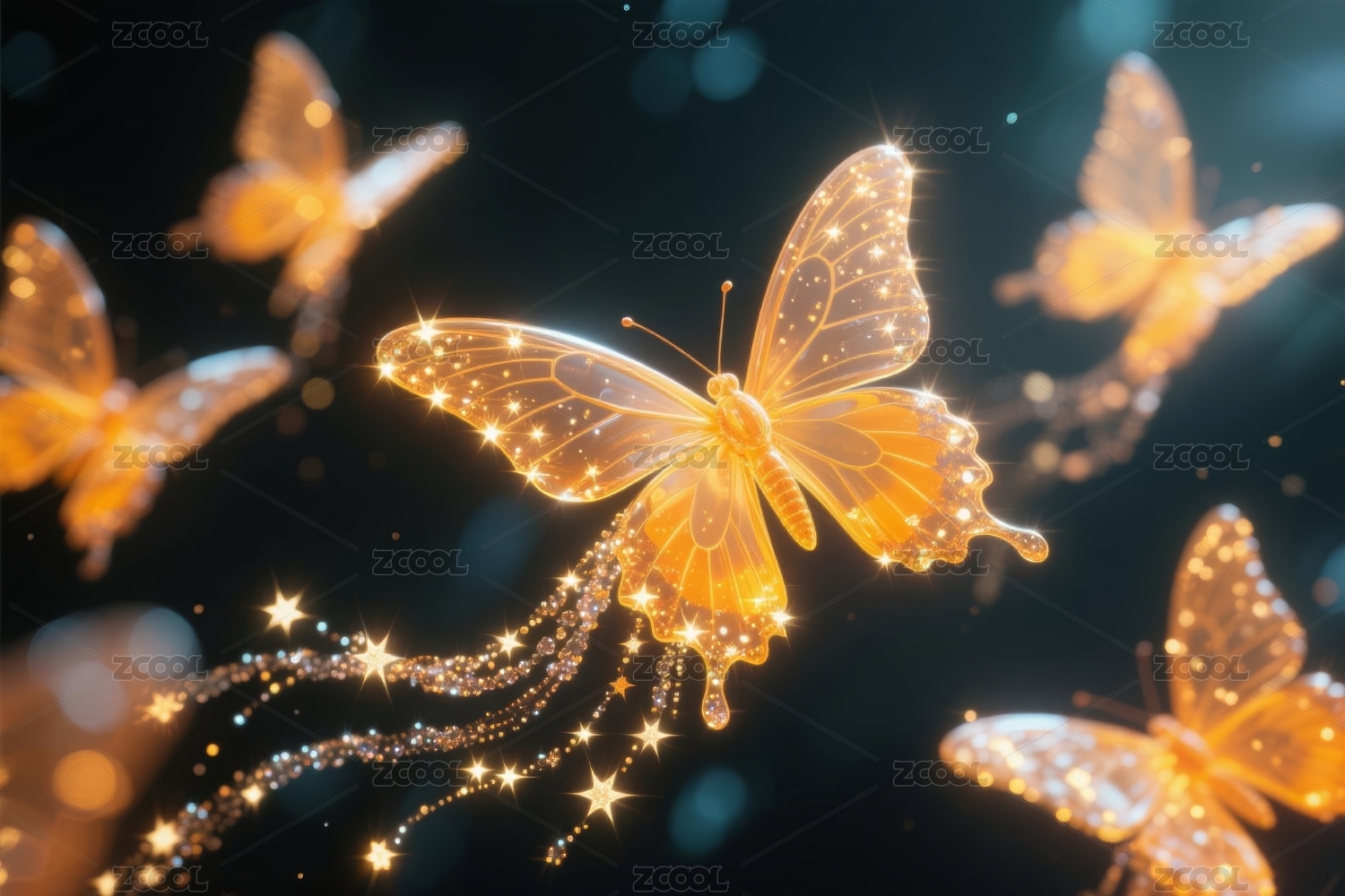 黑夜里黄色的光斑前一只五角星形的LED灯