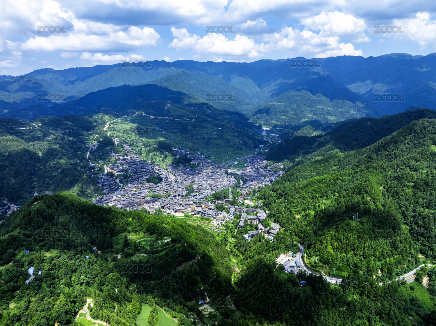 贵州黔东南西江千户苗寨航拍