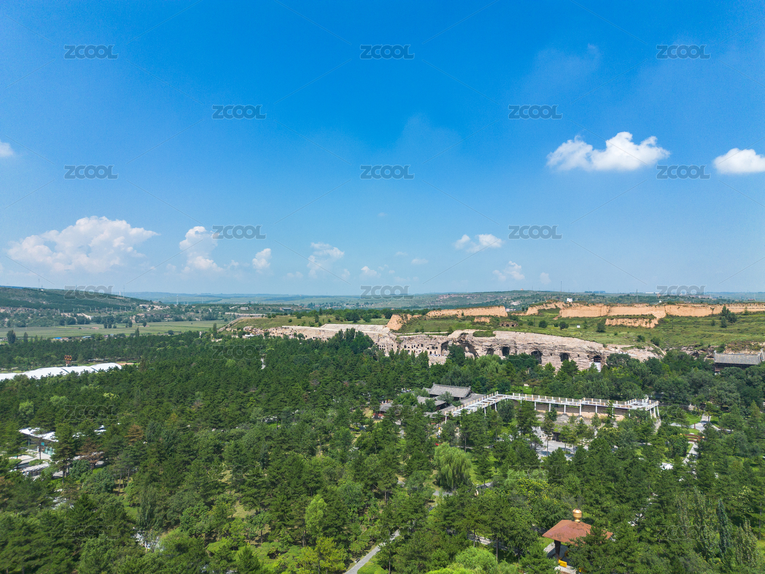 山西大同云冈石窟航拍