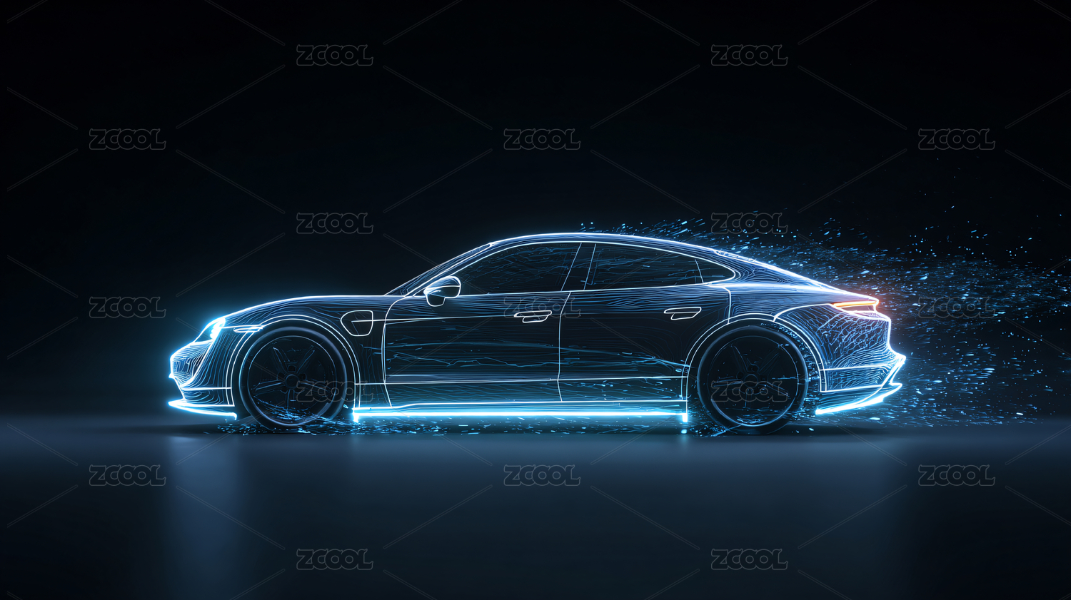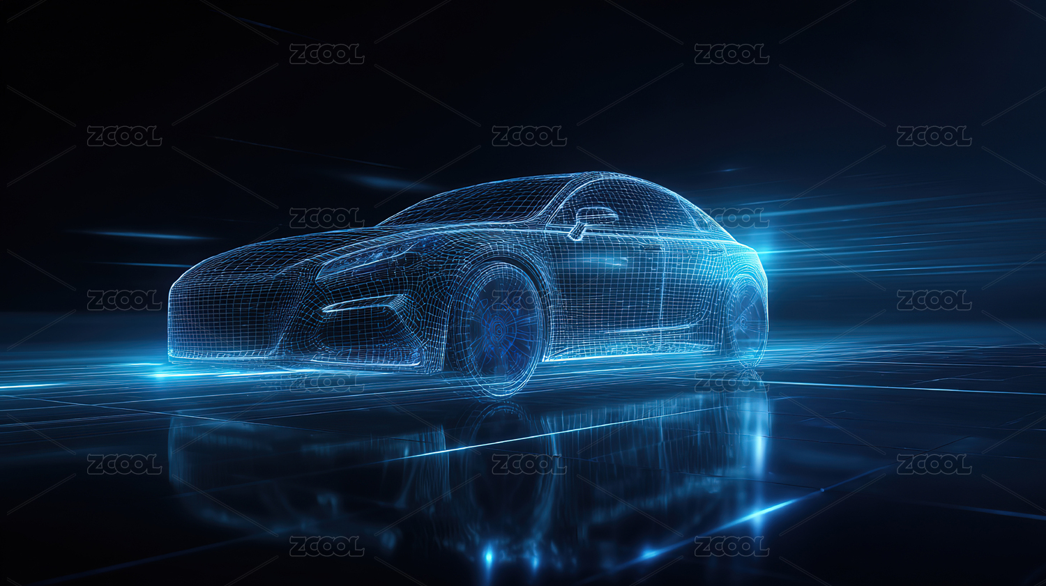 蓝色,透明,跑车,科技感,汽车,未来,炫酷,光影,质感,机械