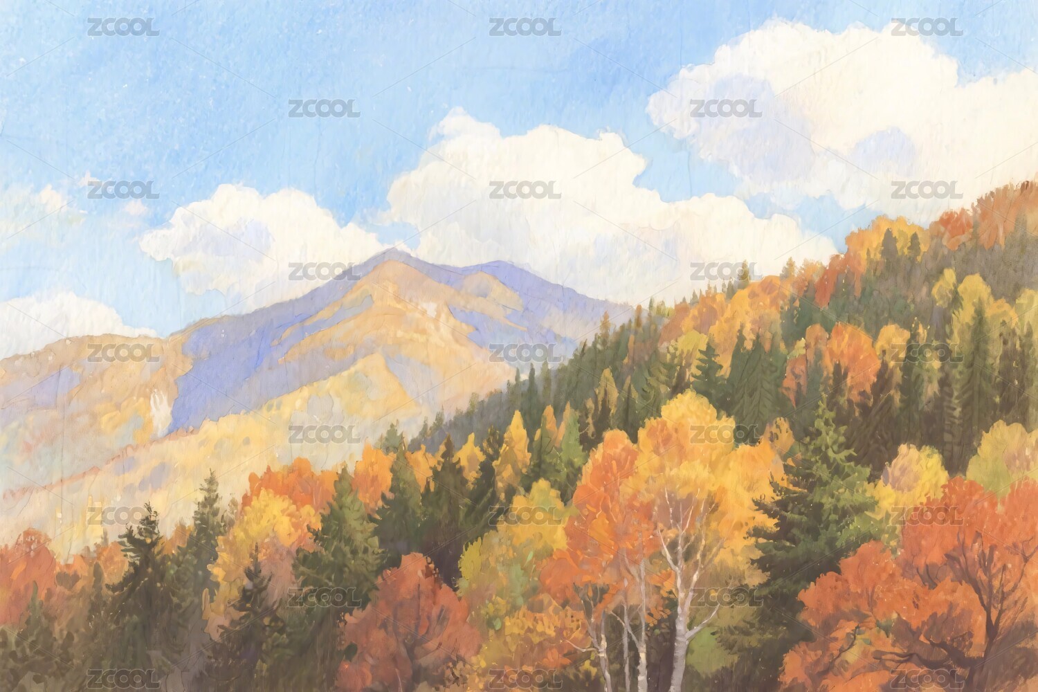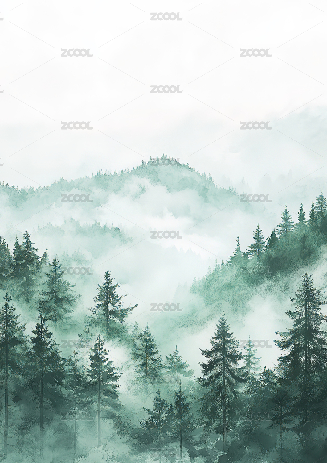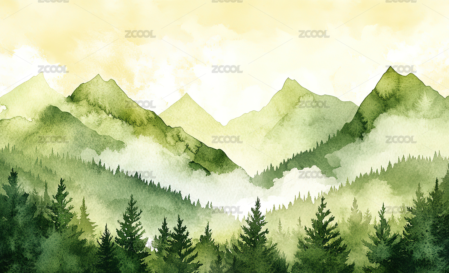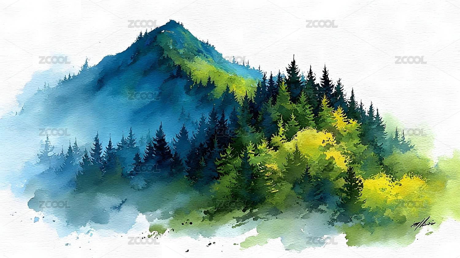 水彩,山林,风景,绘画,艺术,自然,绿意,山峦,树木,光影
