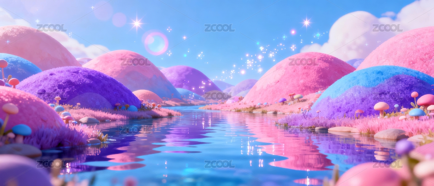 商业,壁纸,场景,素材,设计,装饰,主视觉,可爱,山丘,彩色