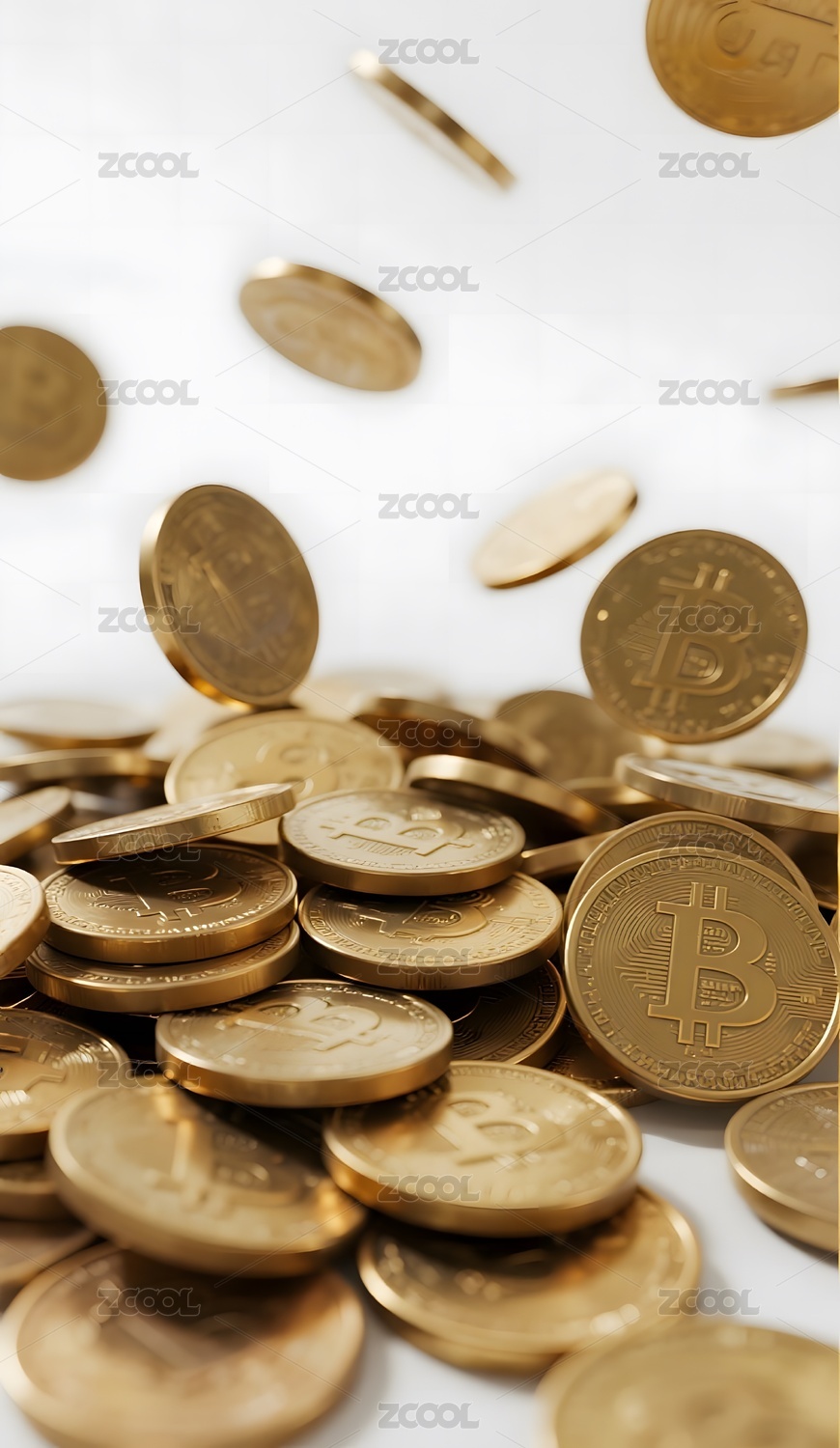 金色比特币飞舞堆叠