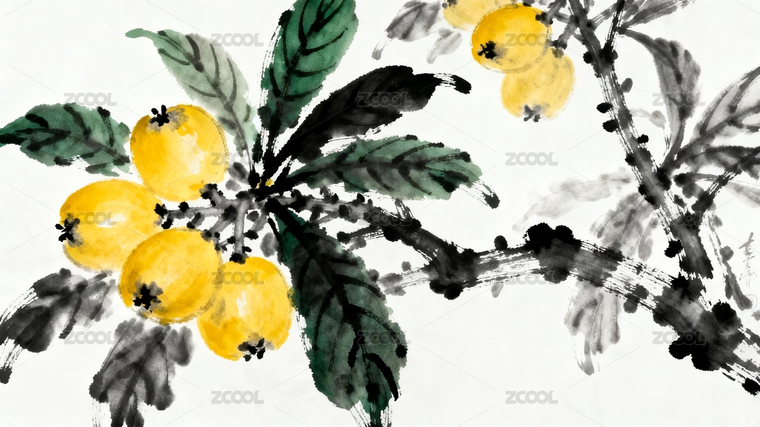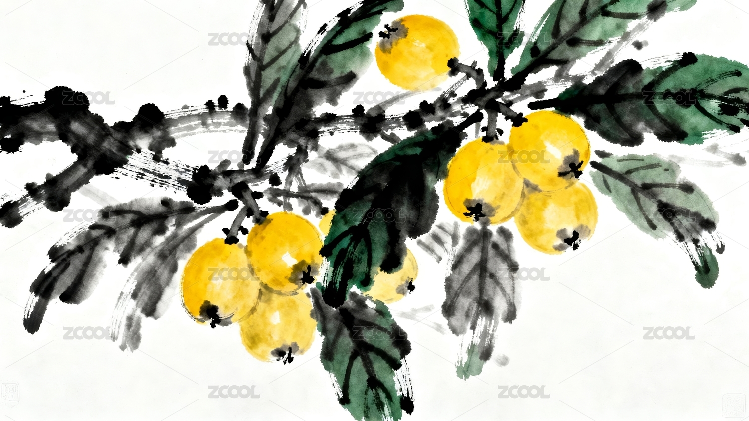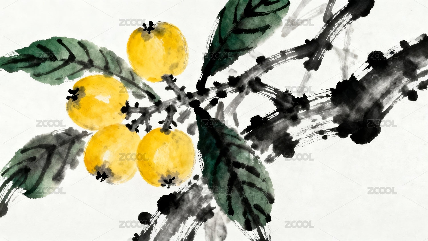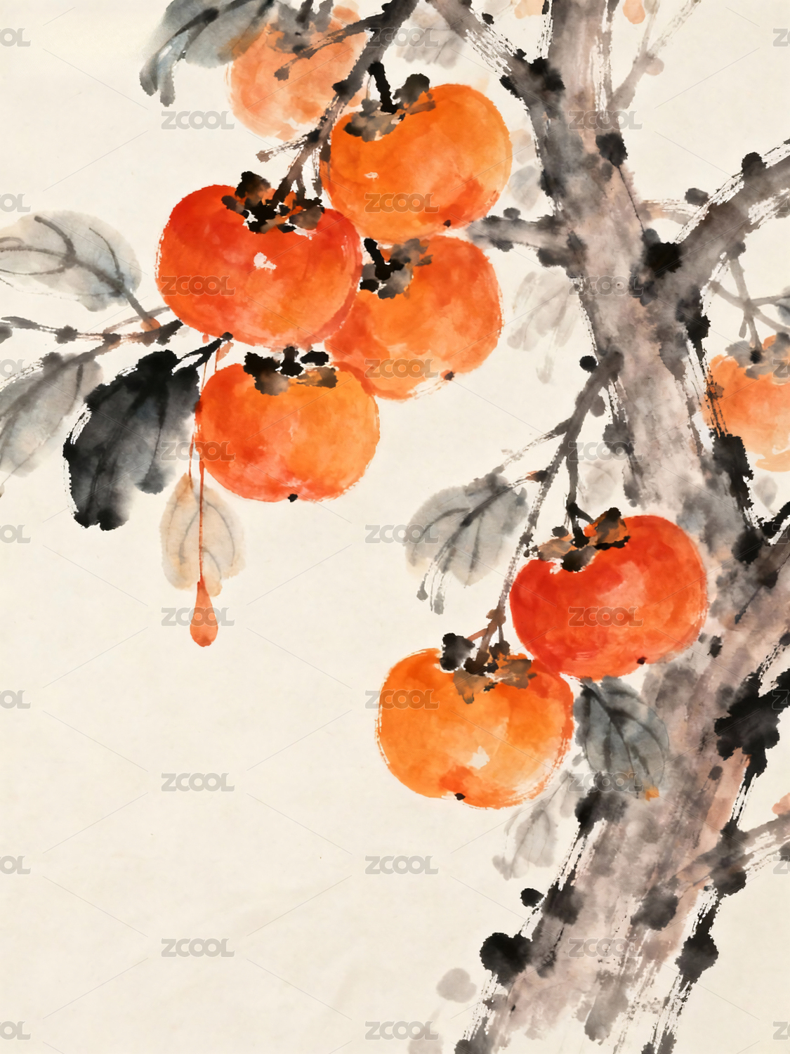 主视觉,商业,壁纸,水墨,柿子,传统,艺术,场景,国画,果实