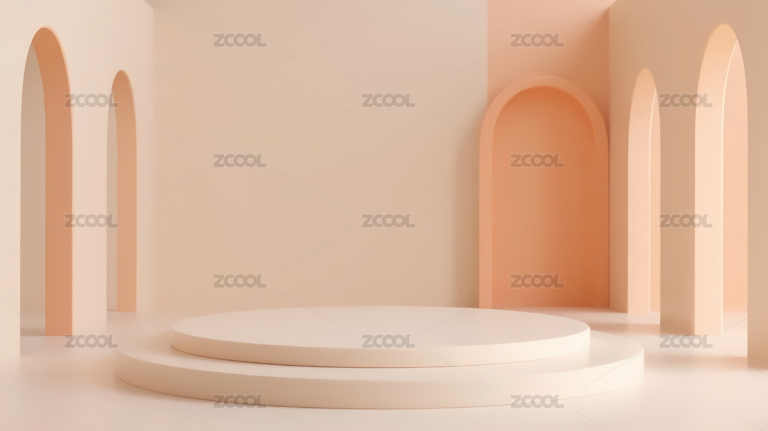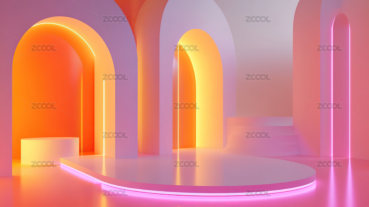 渐变拱门与圆形平台的现代艺术空间
