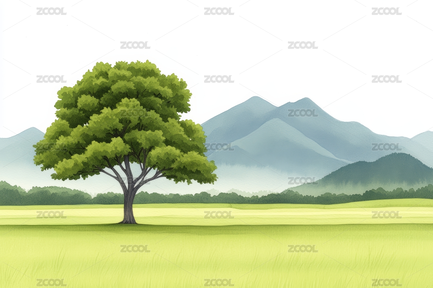 插画,树木,草地,森林,绿树,风景,自然,平面,简洁,树叶