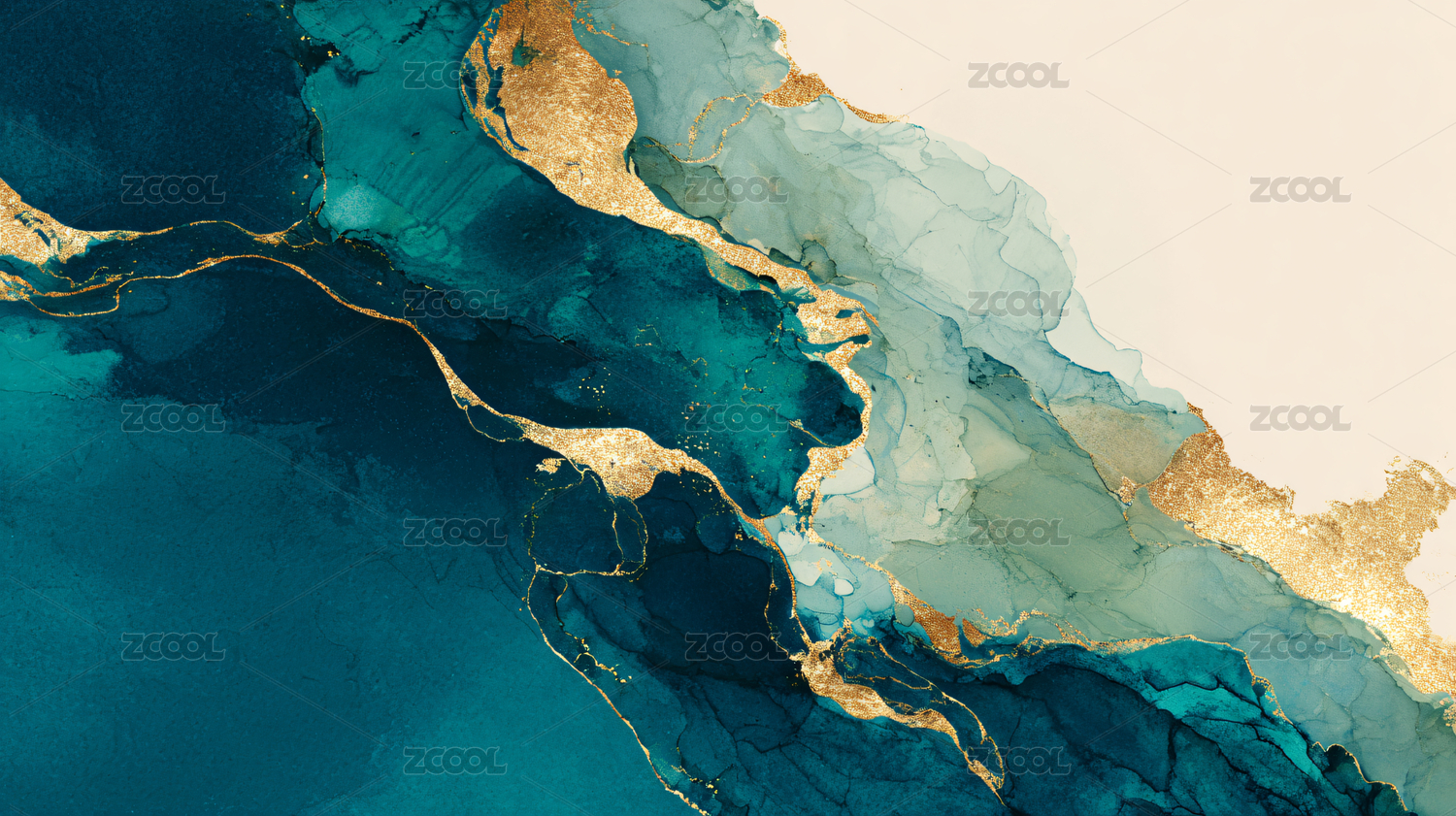 流体,艺术,蓝绿,金色,画面,创意,视觉,效果,简约,拍摄