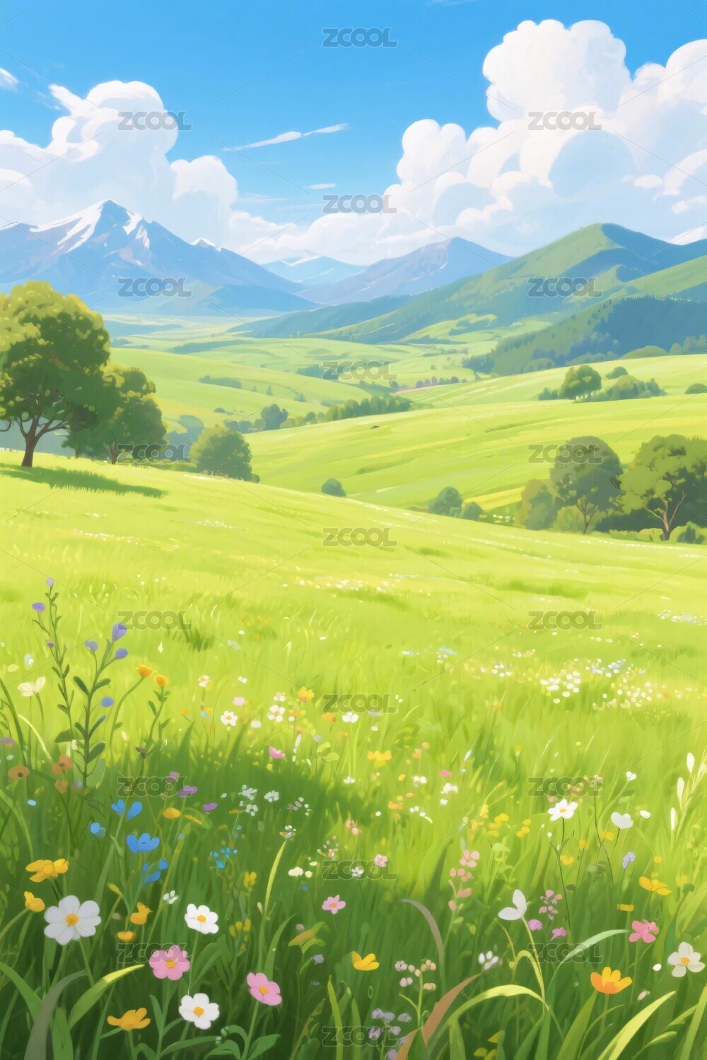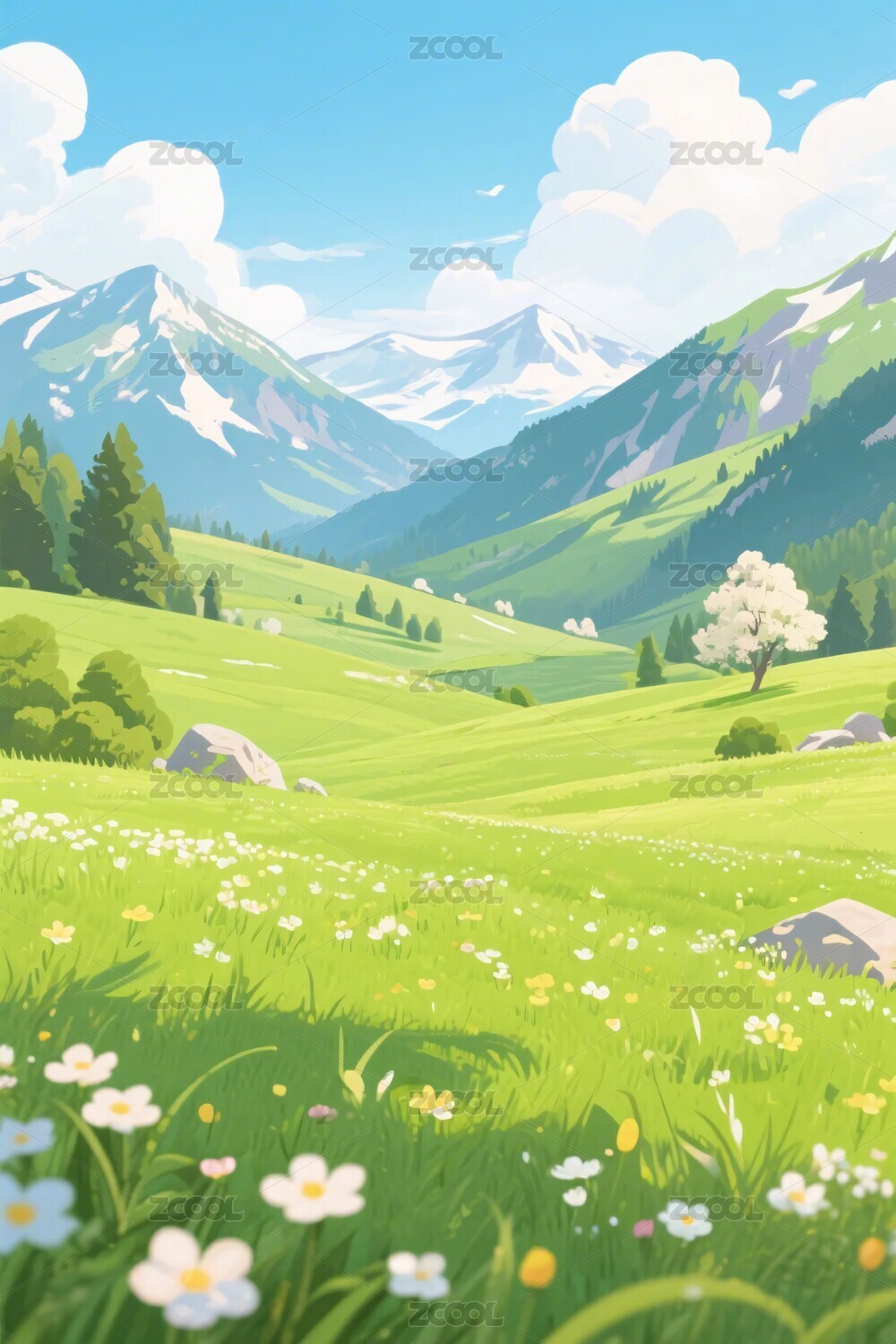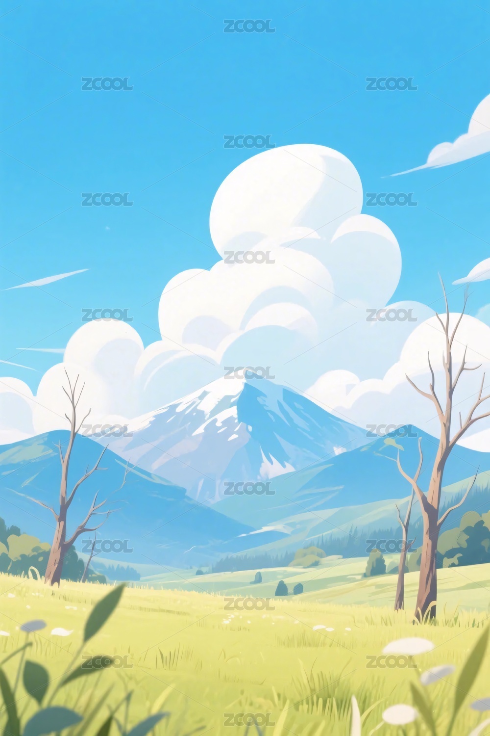 清新治愈草原卡通插画