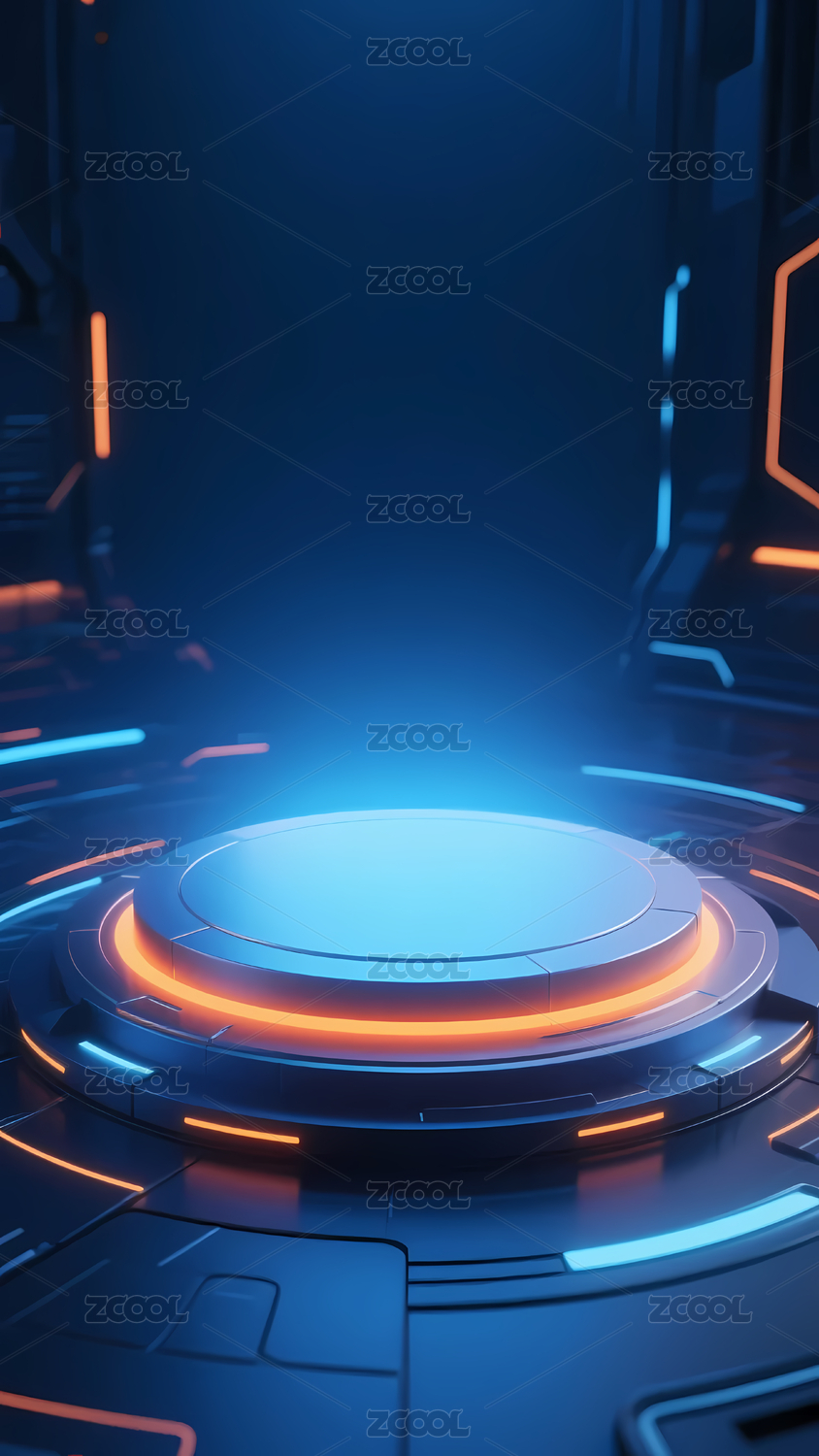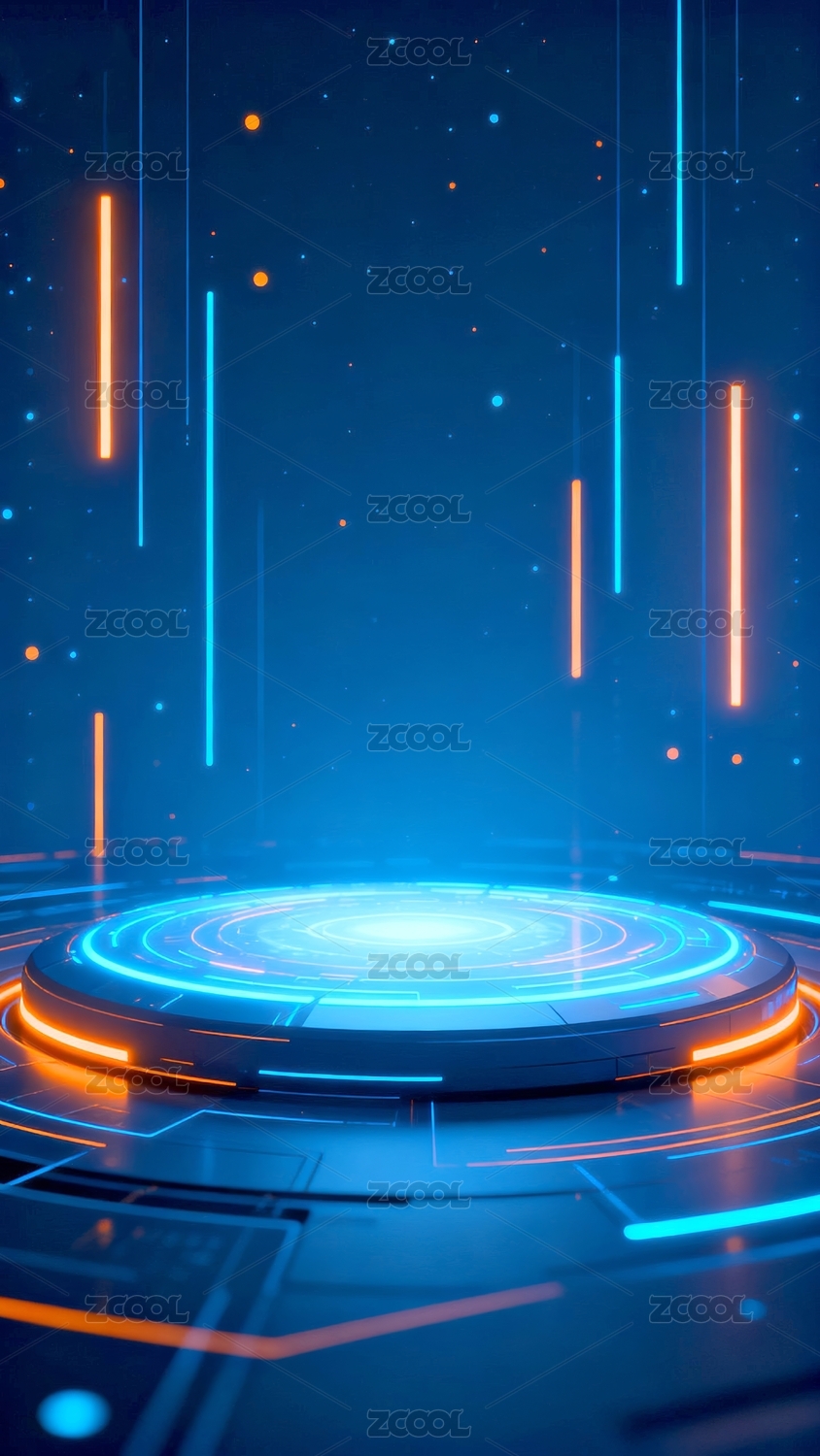 科技舞台蓝橙光效场景