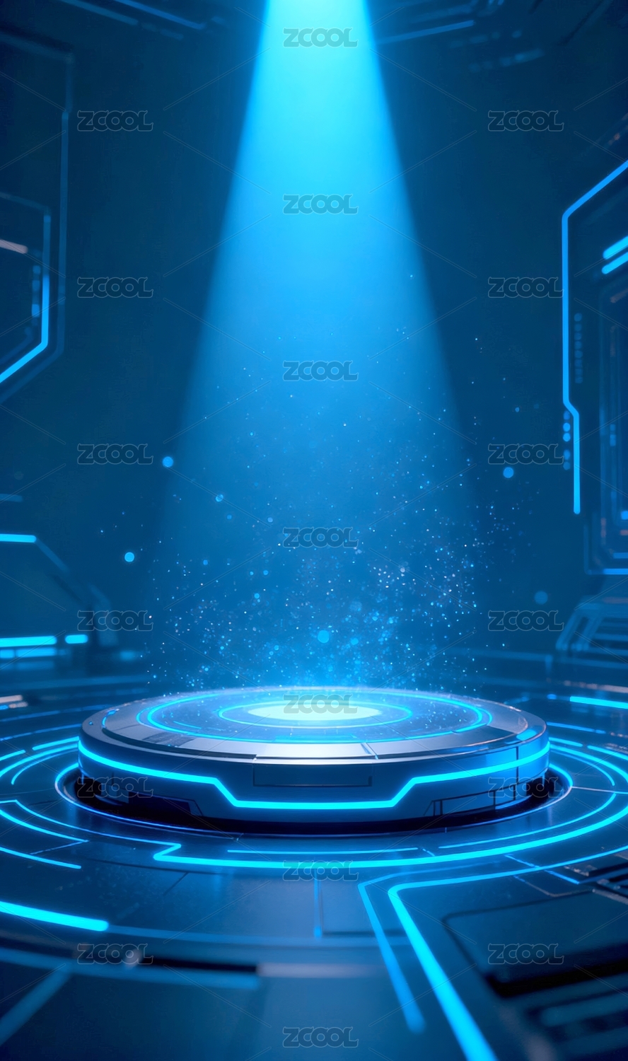 科技展台蓝色产品展示场景