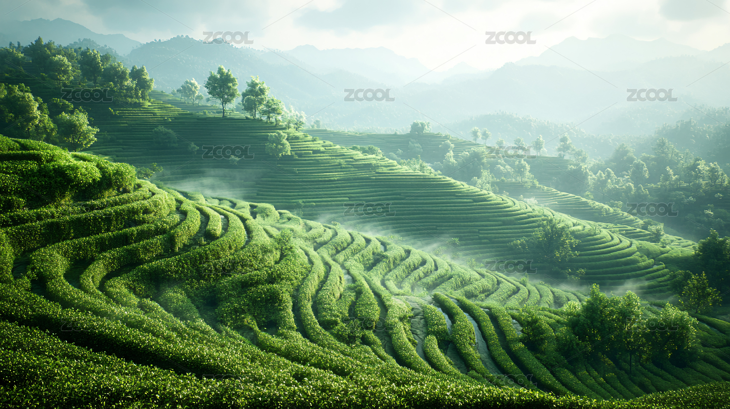 茶山,绿茶,山景,云雾,飘叶,茶叶,种植,自然,生态,田园