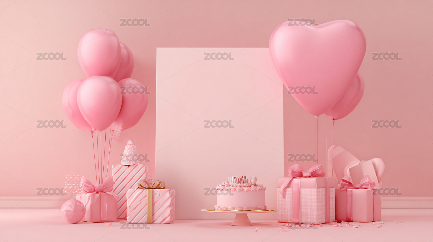 粉色,爱心,气球,礼盒,生日,场景,蛋糕,礼物,派对,浪漫