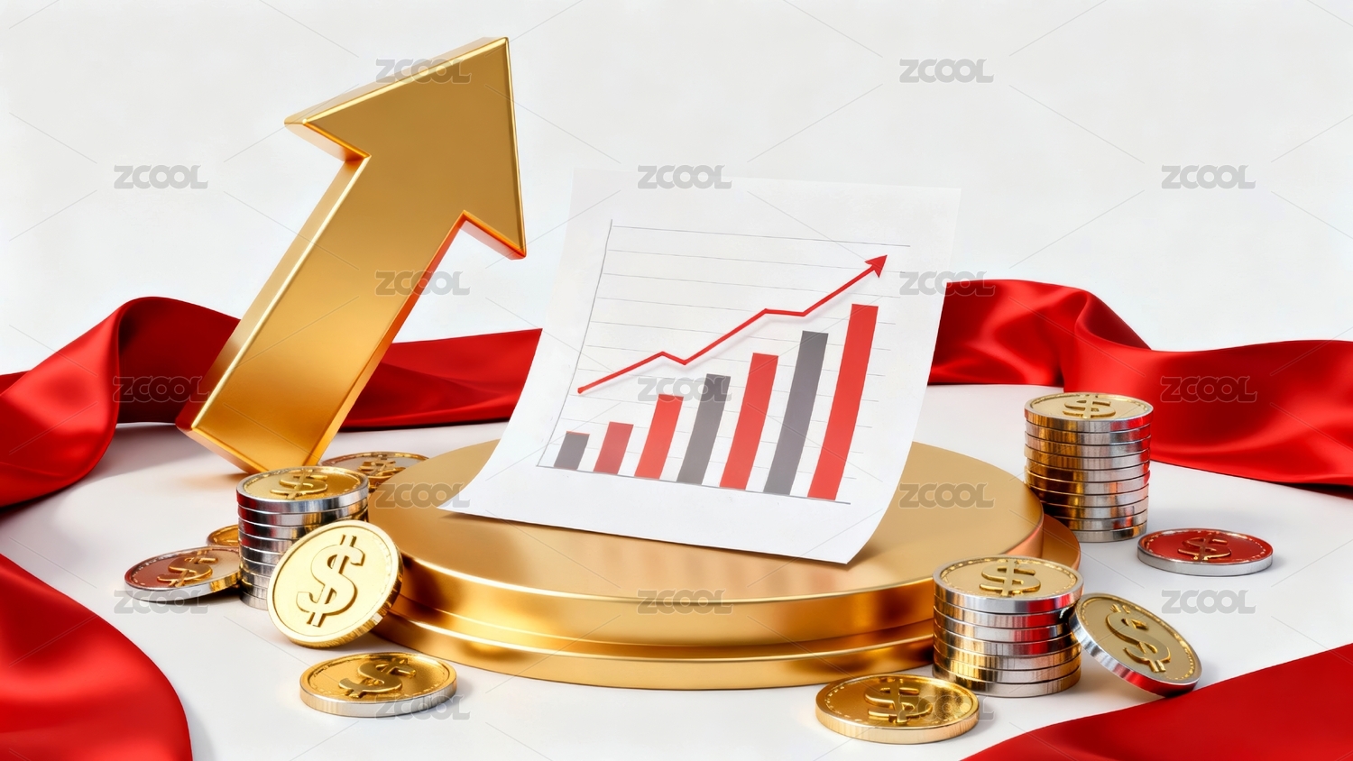 主视觉,商业,壁纸,金融,增长,财经,场景,金币,图表,红绸