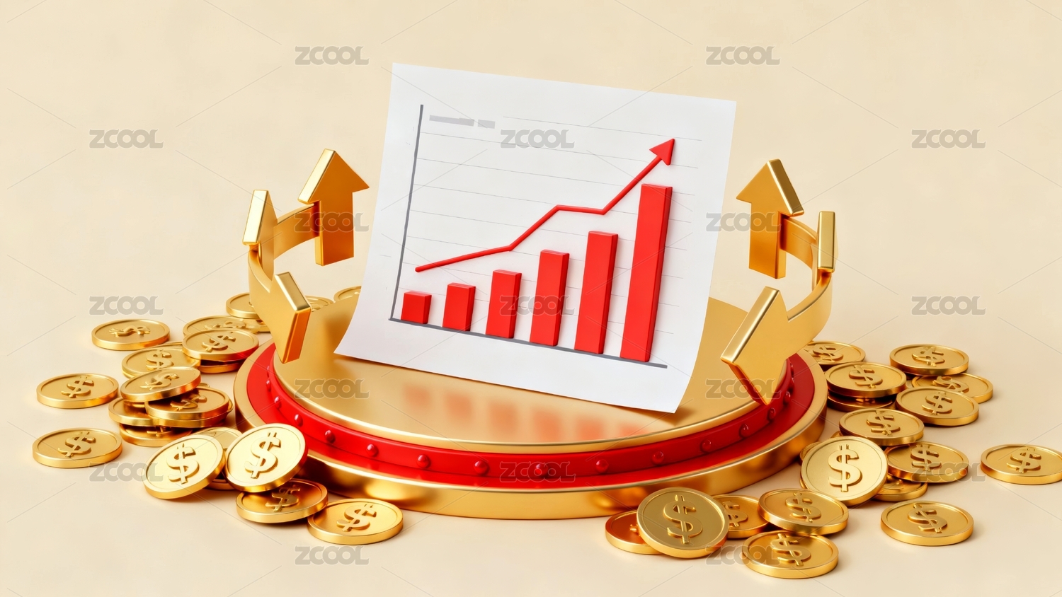 主视觉,商业,壁纸,金融,增长,财经,场景,金币,图表,红绸