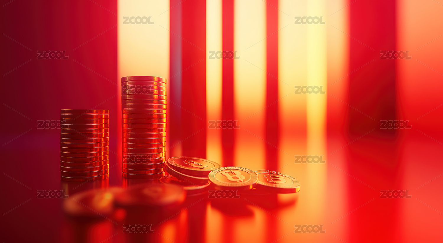 金融背景下堆叠的金币