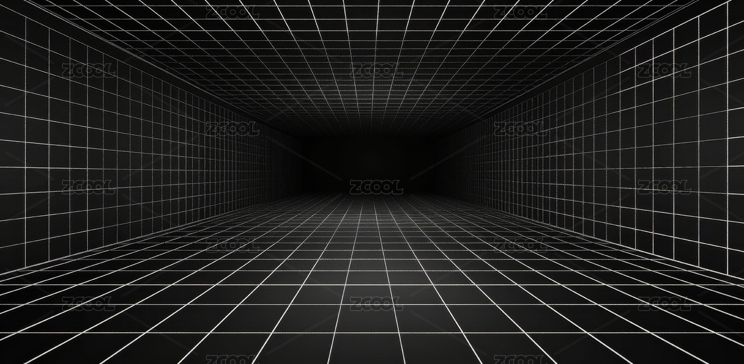 现代,建筑,长廊,网格,黑白,线条,对称,透视,窗户,玻璃