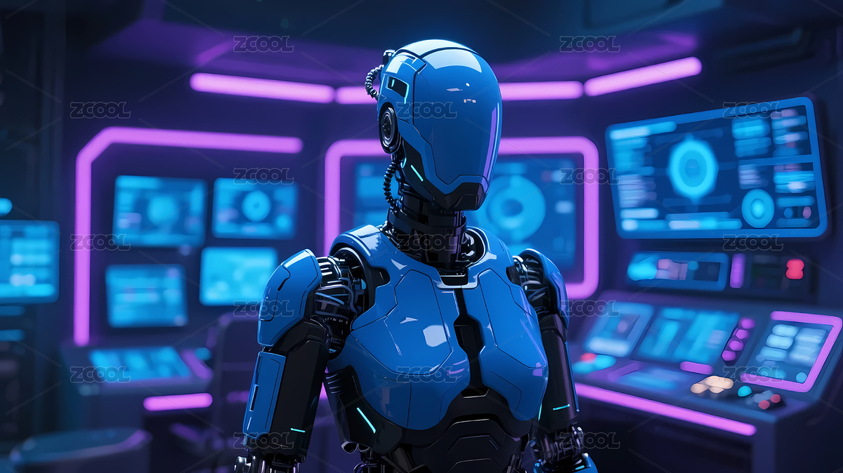 蓝色,未来,科技,屏幕,紫色,机器人,霓虹灯,数据,控制室,流线型