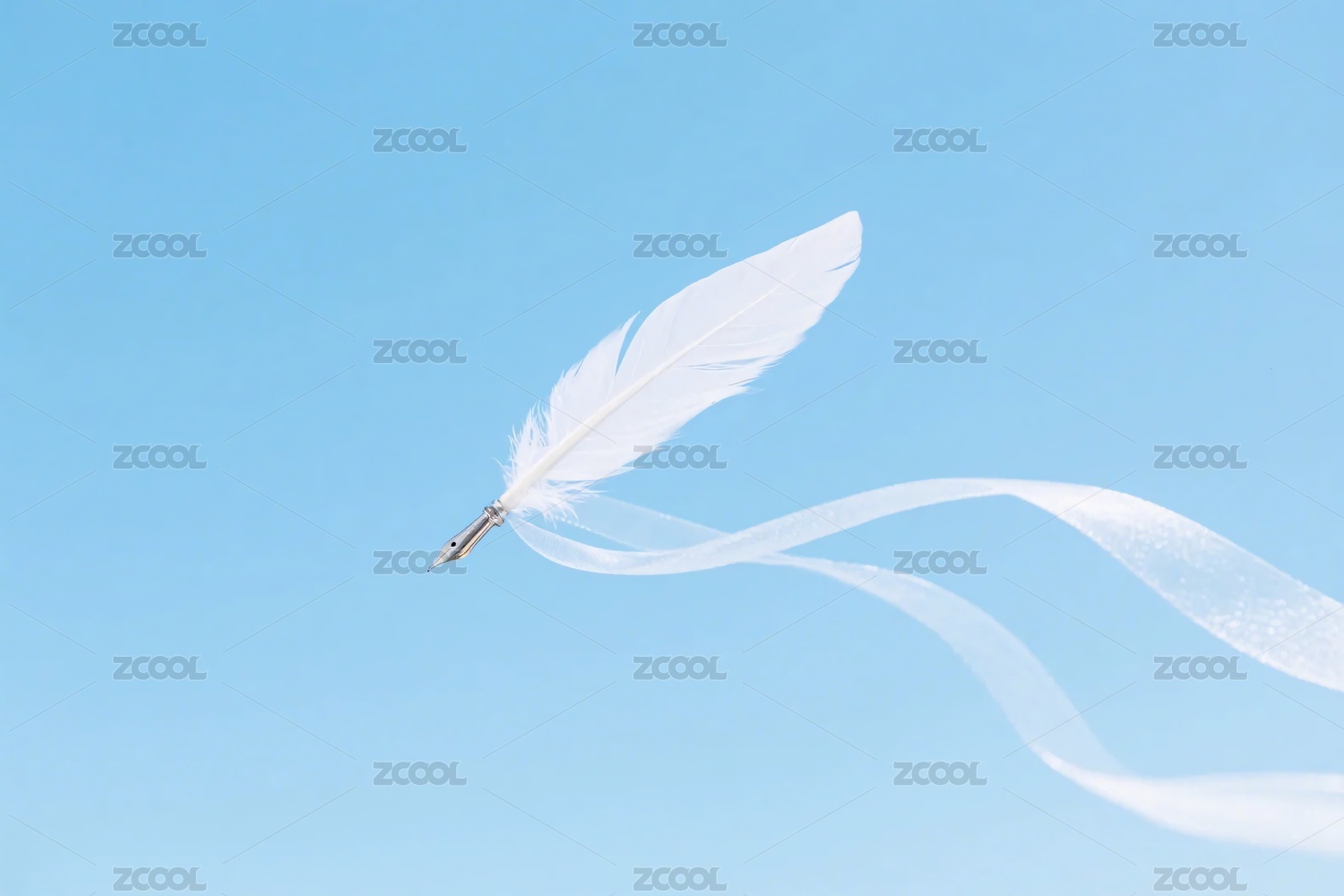 羽毛笔,小鸟,飞翔,蓝天,飘带,信笺,幻想,插画,创意,艺术