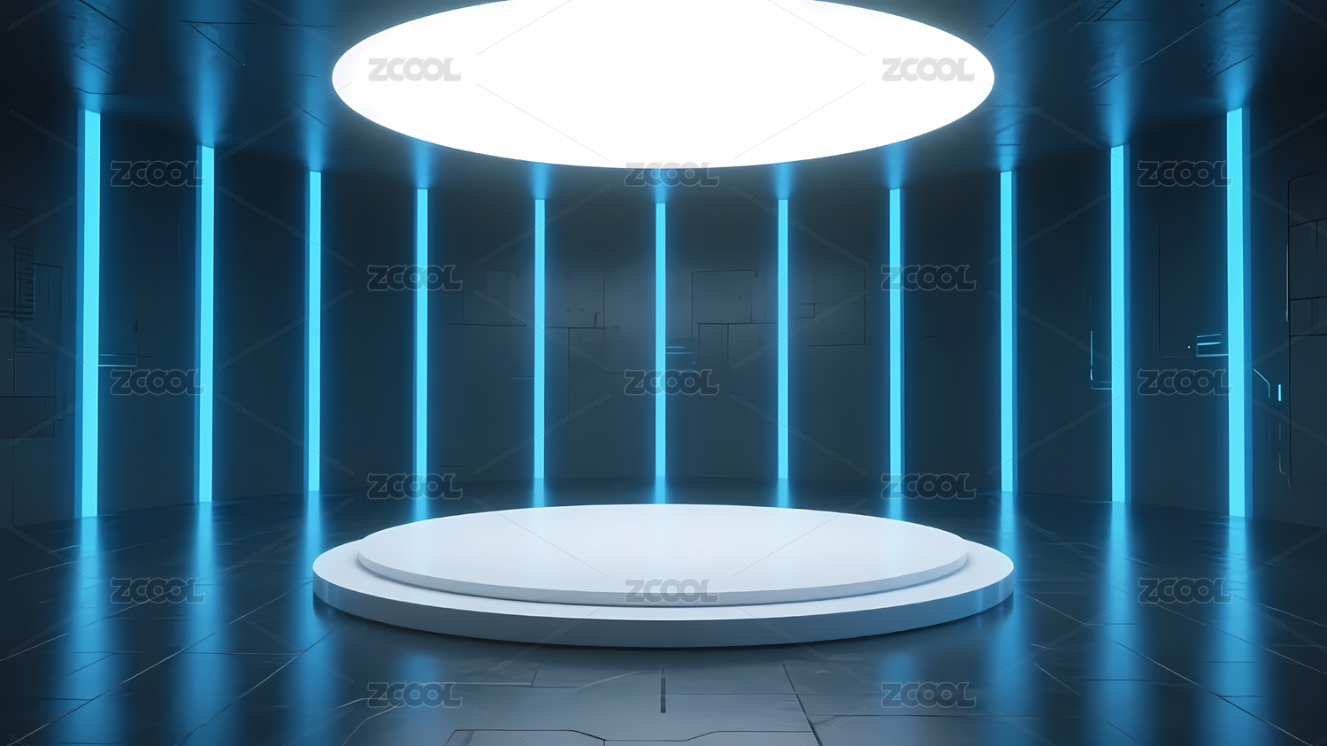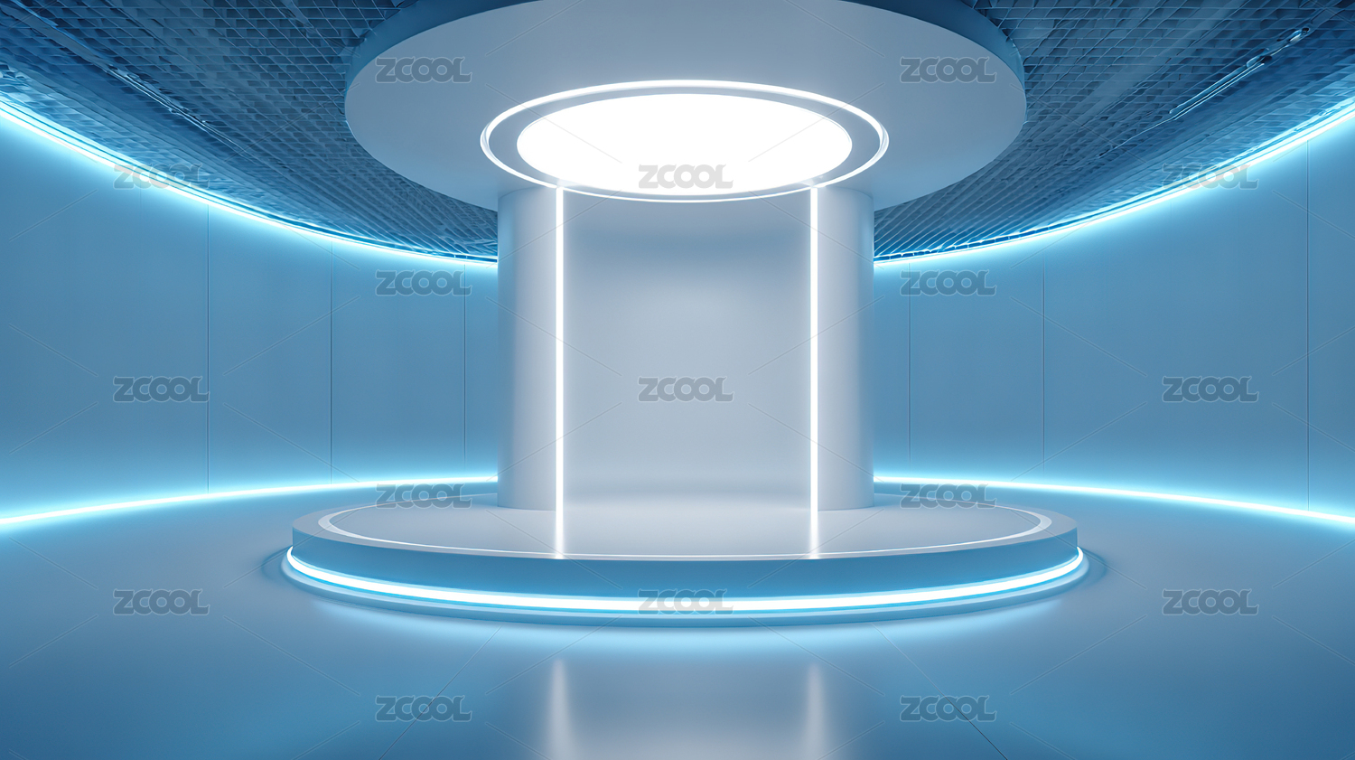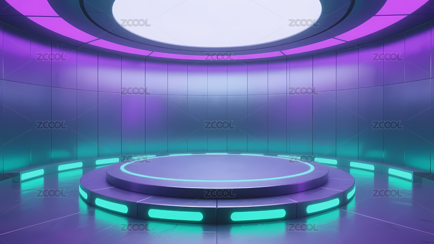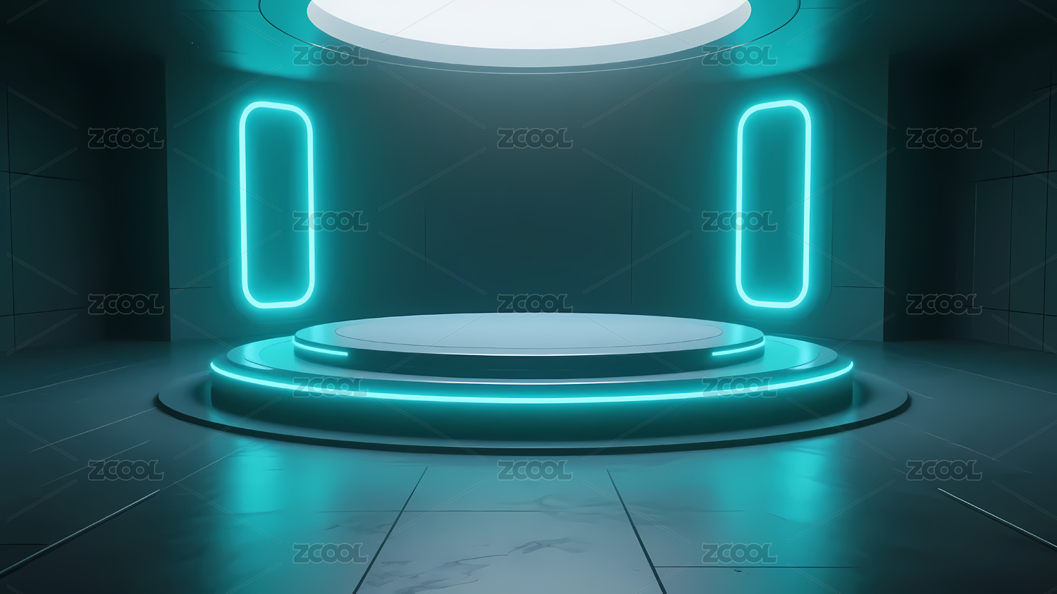 科技,未来,墙壁,冷色,圆形,平台,天花板,室内,绿光,蓝灯