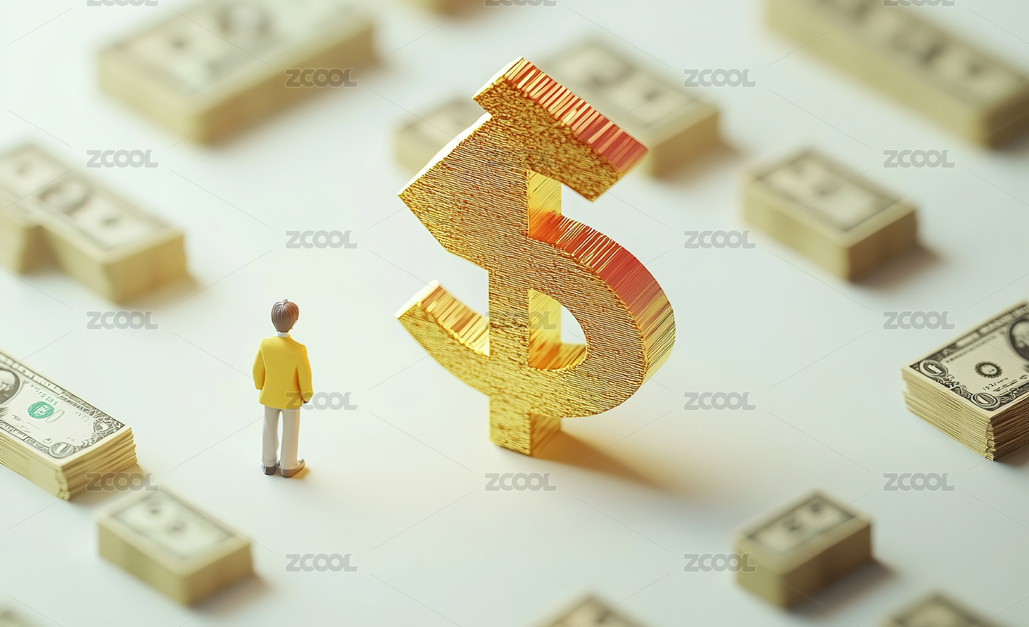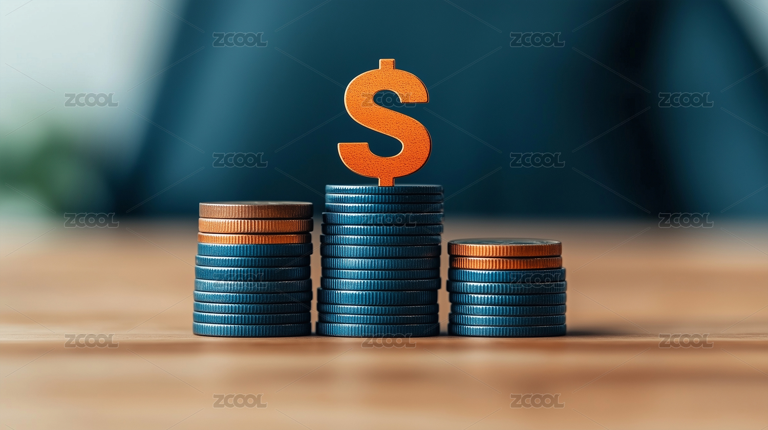 金钱堆叠与美元符号