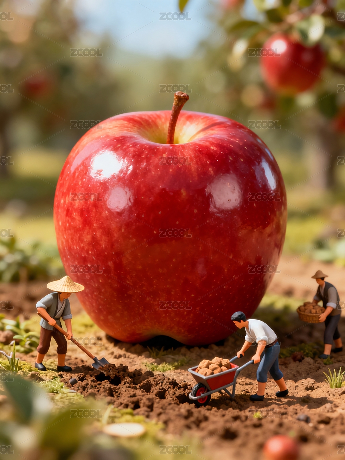 红色,迷你,劳动,果实,推车,农夫,铲子,人物,种植,收获