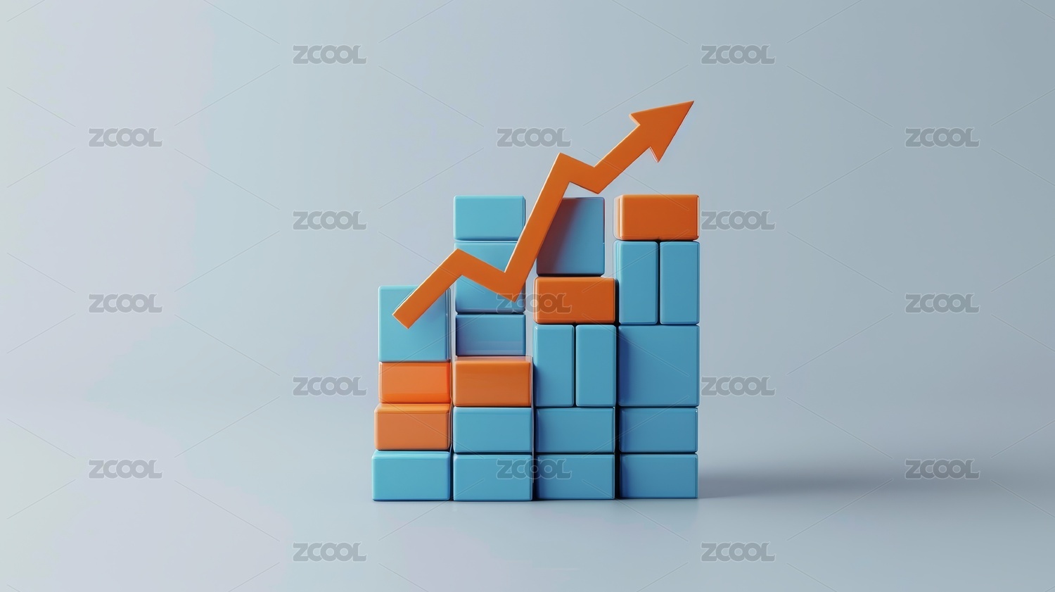立体方块堆叠与上升箭头图