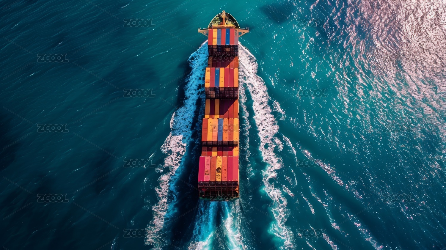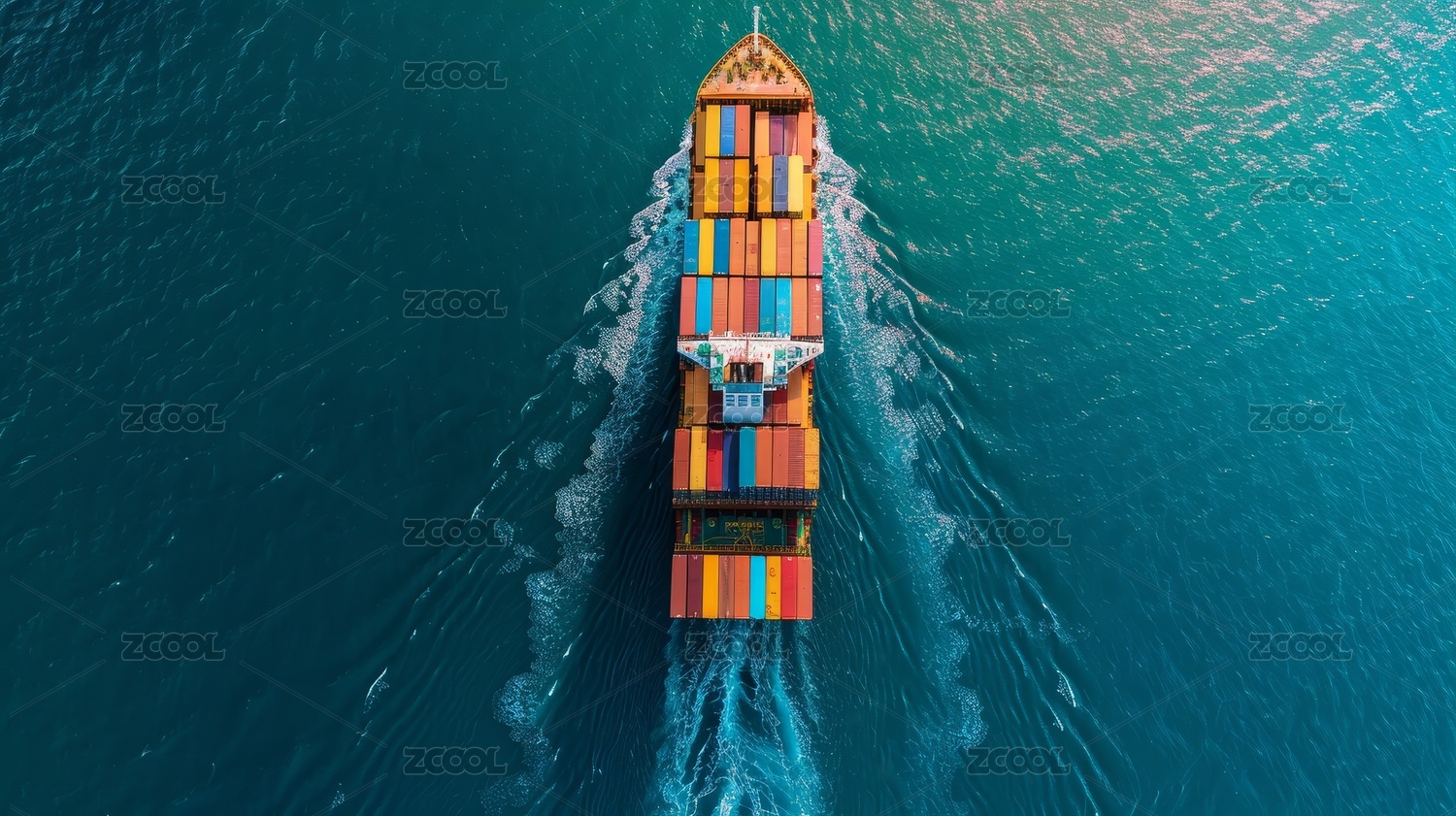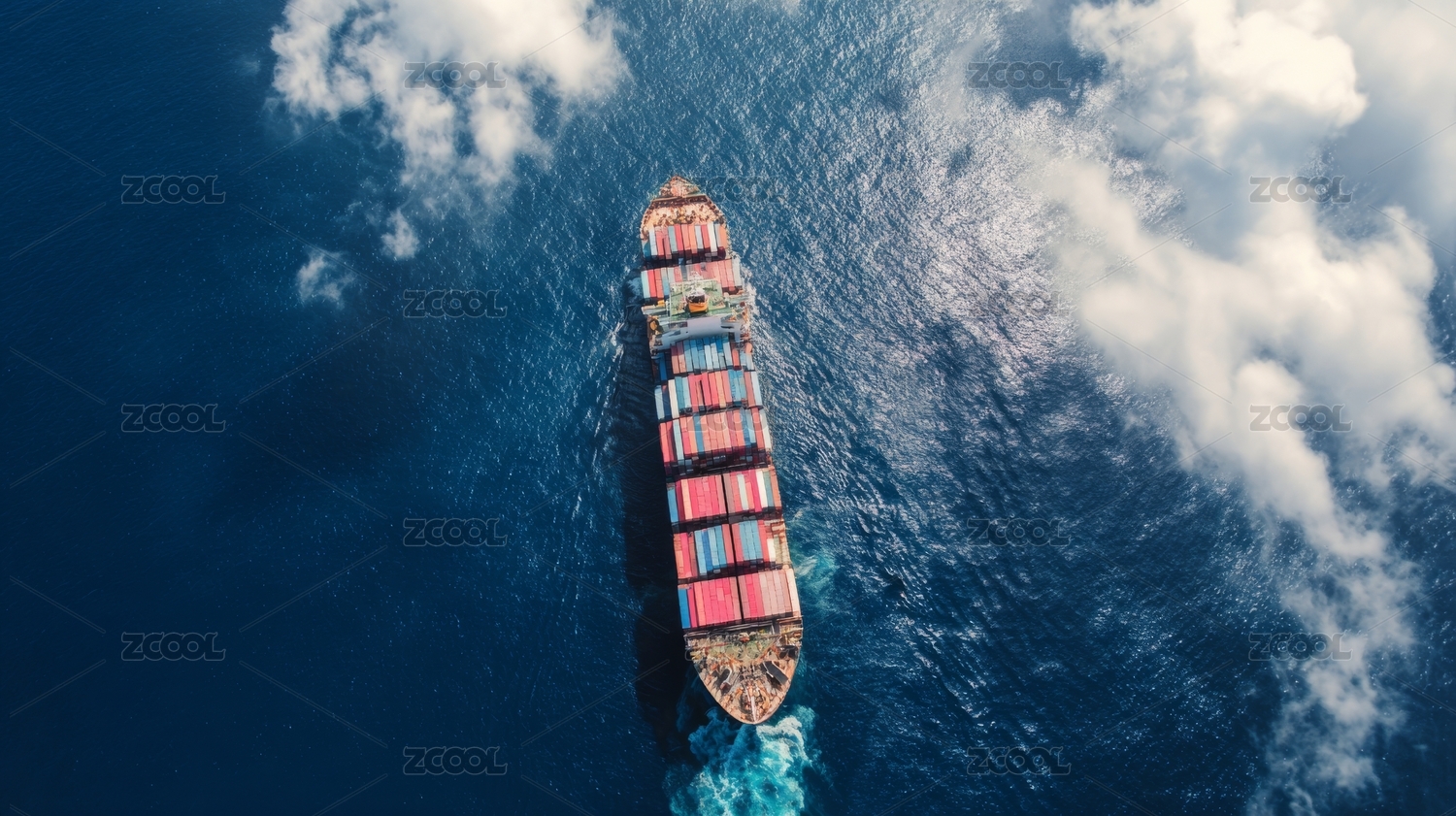俯视角度海上载满货物的轮船在航行