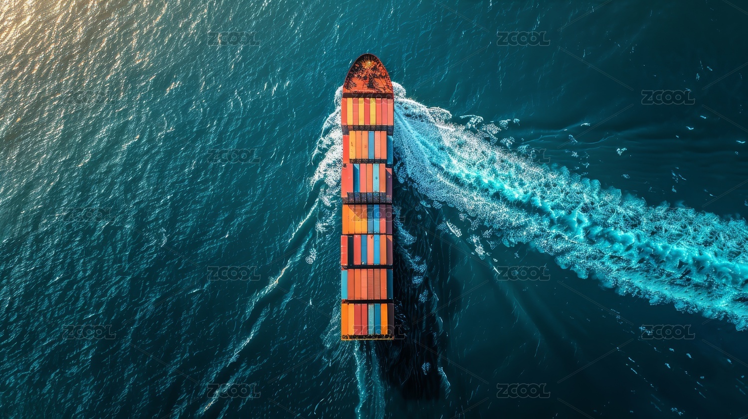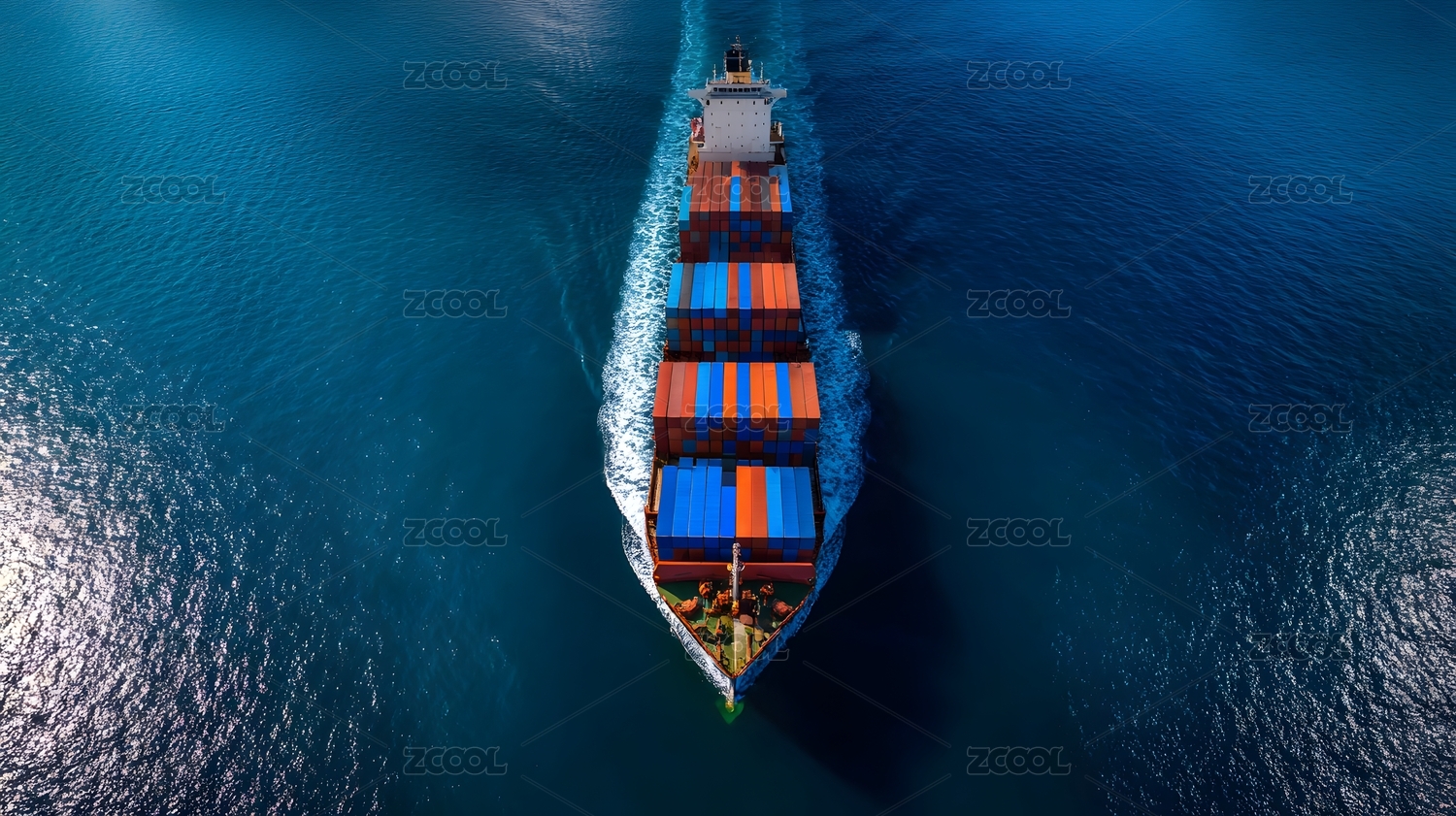 集装箱货轮航行在海洋中