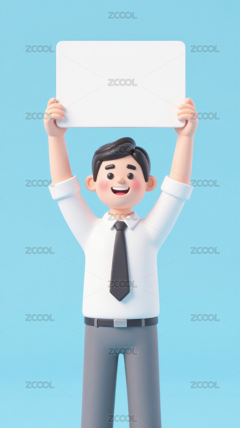 卡通,商务,3D,西装,蓝色,领带,展示板,指引,宣传,形象
