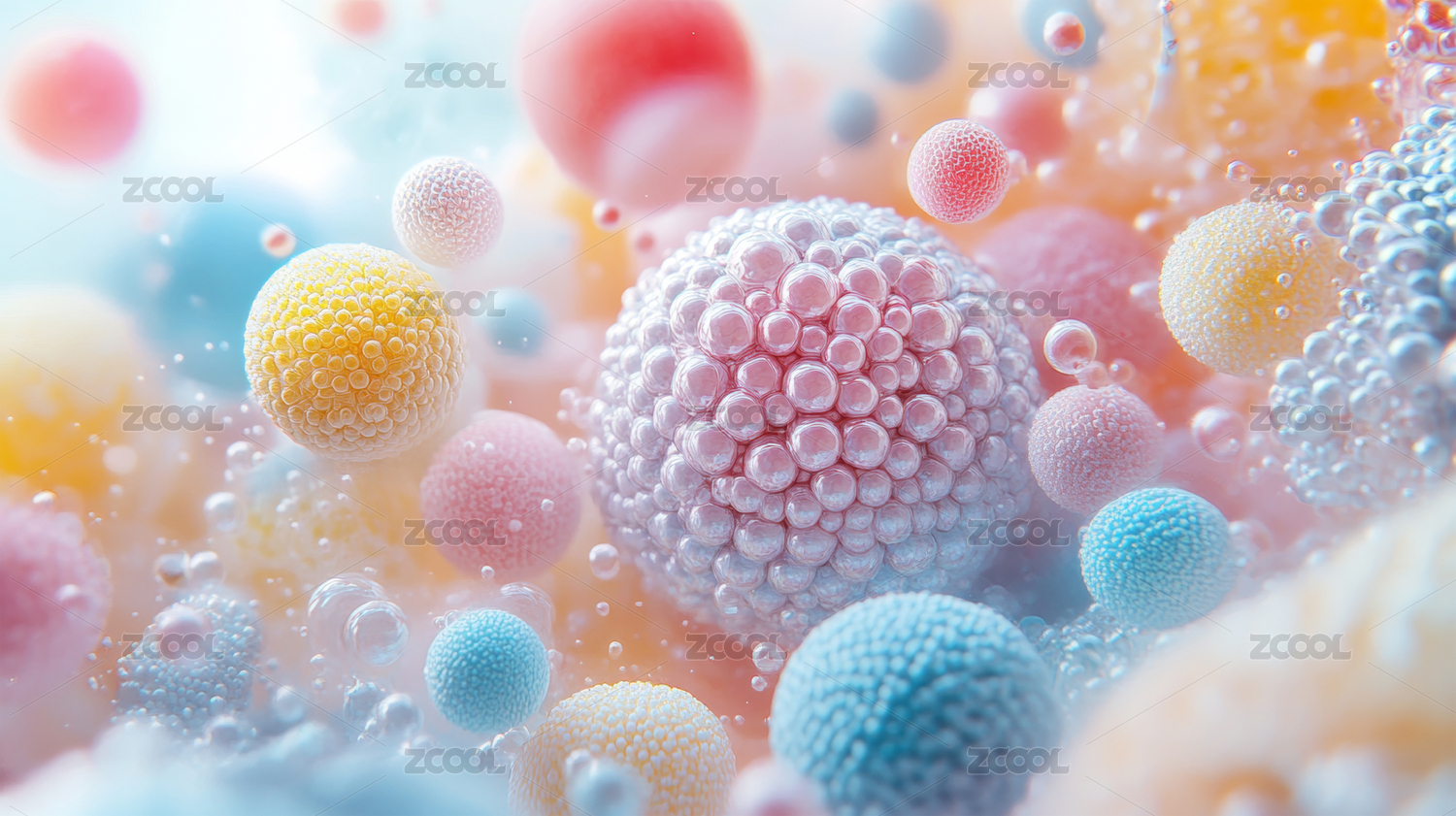 色彩斑斓,毛绒球体,漂浮,云层,天空,柔软质感,梦幻场景,自然背景,视觉艺术,抽象元素