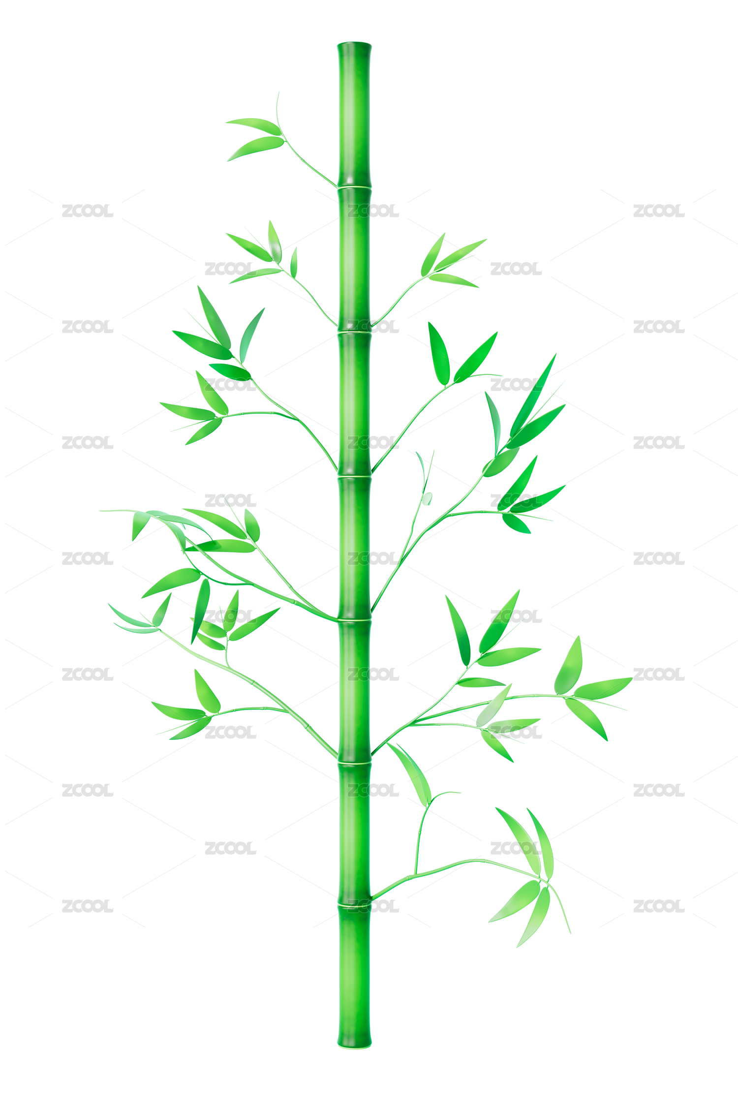 三维渲染白色背景下的绿色竹子竹林